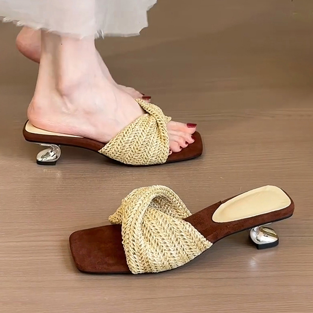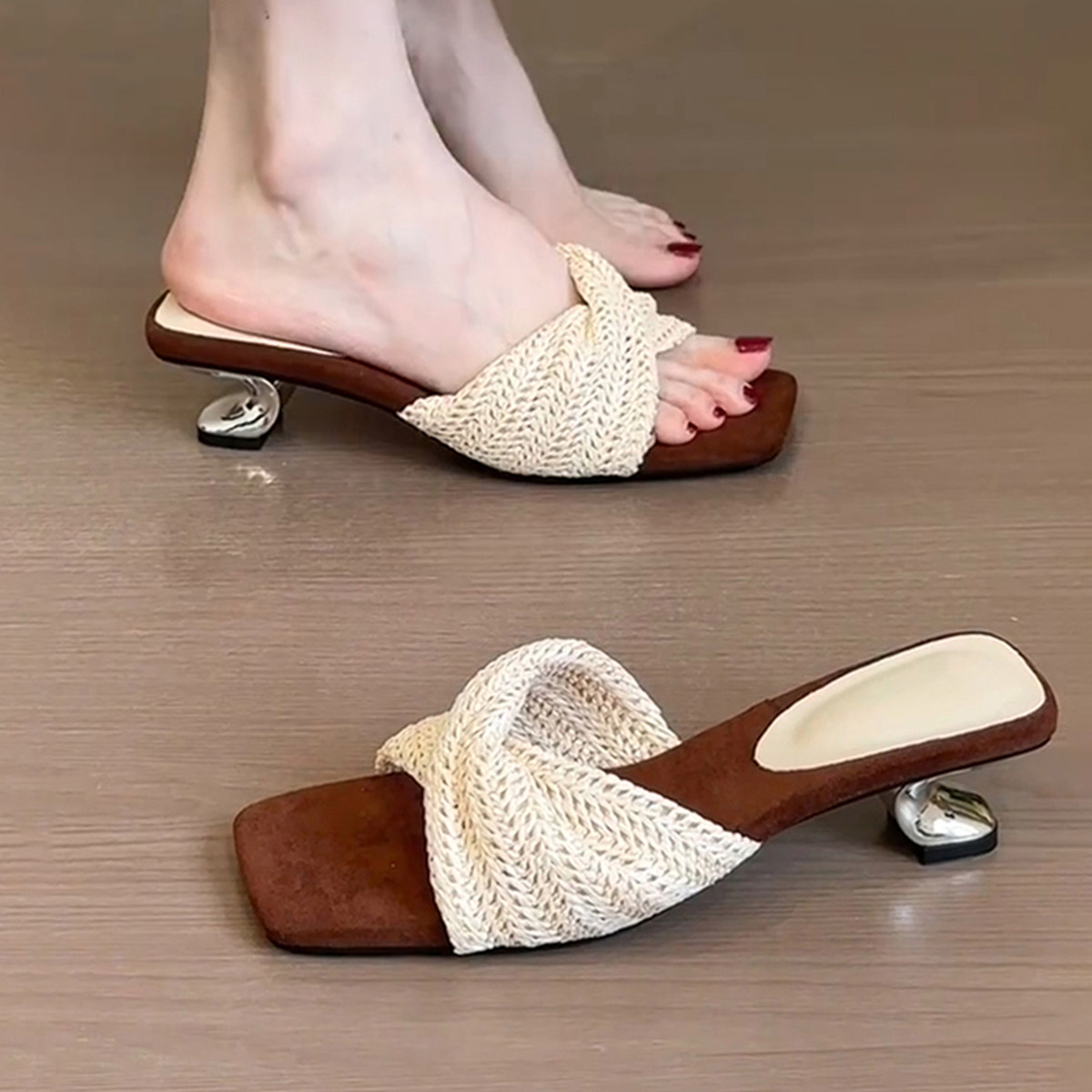 女设计感度假风方头露趾沙滩凉拖鞋 2026新款 复古高跟坡跟罗马凉鞋