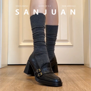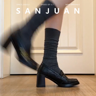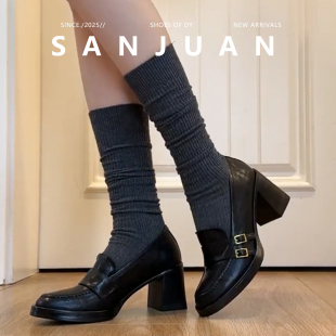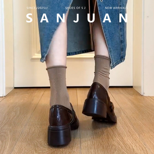 粗跟小皮鞋 羊皮版 厚底增高鞋 jk制服鞋 日系 sanjuan三卷高跟乐福鞋