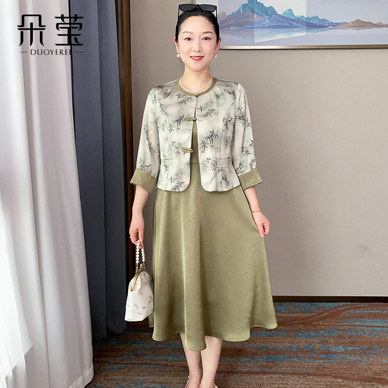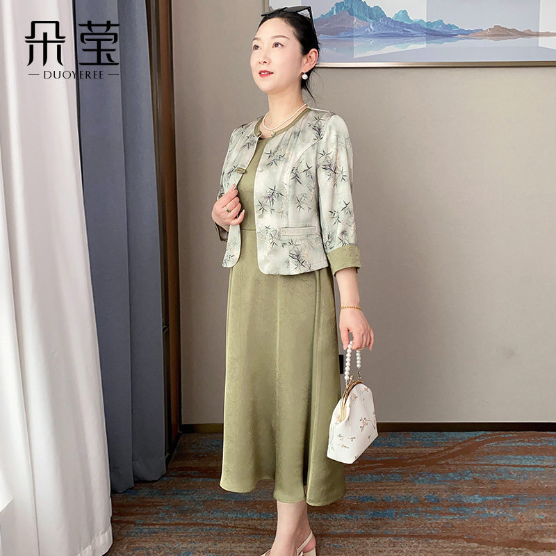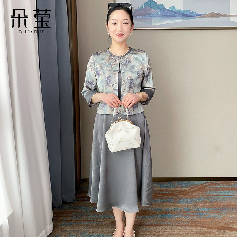中老年女外套裙子套装 朵莹妈妈装 新款 连衣裙两件套2025秋季 新中式