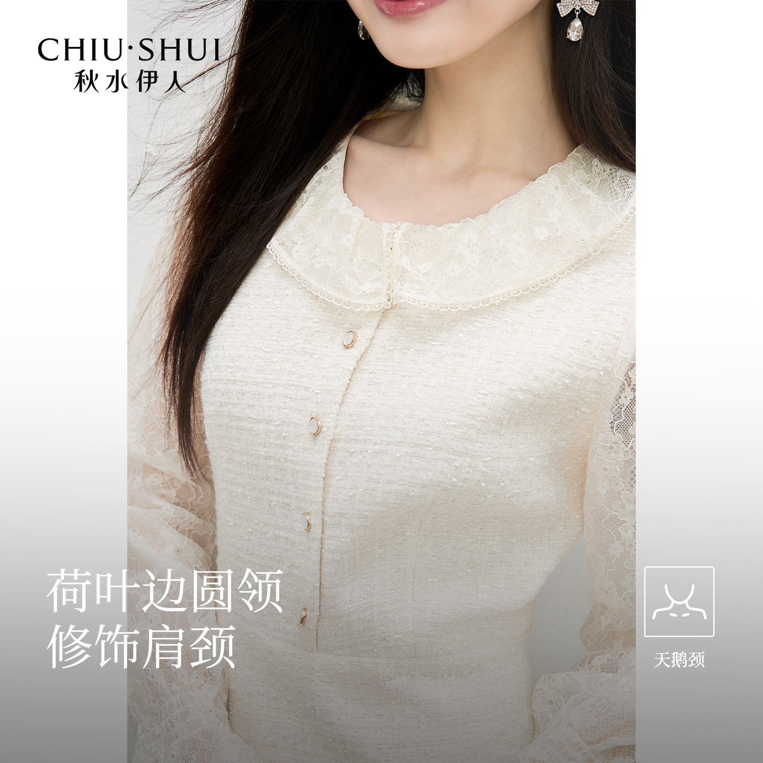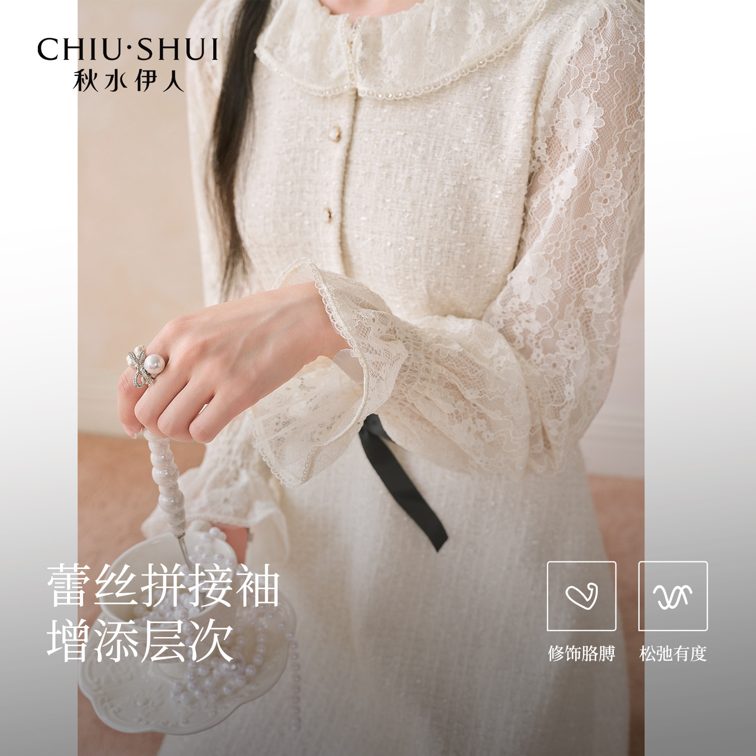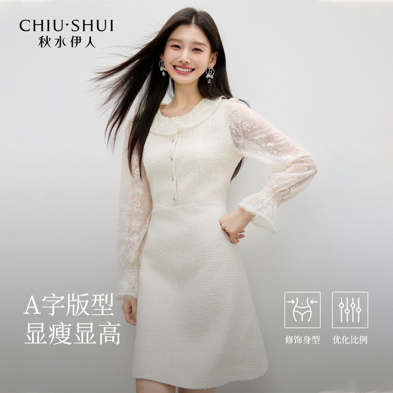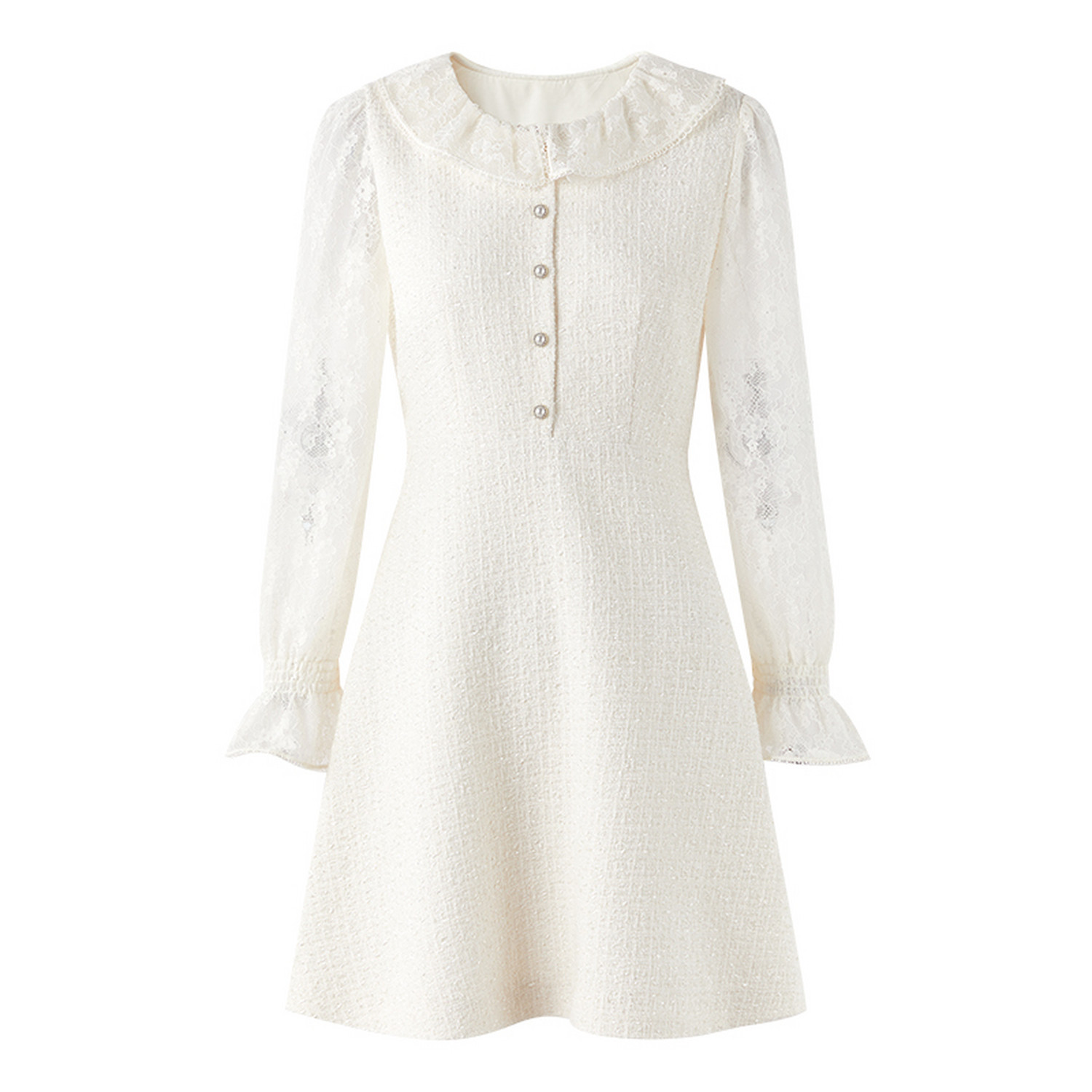 收腰衬衫 连衣裙女秋季 短裙 少女设计感紫色蕾丝花边长袖 法式