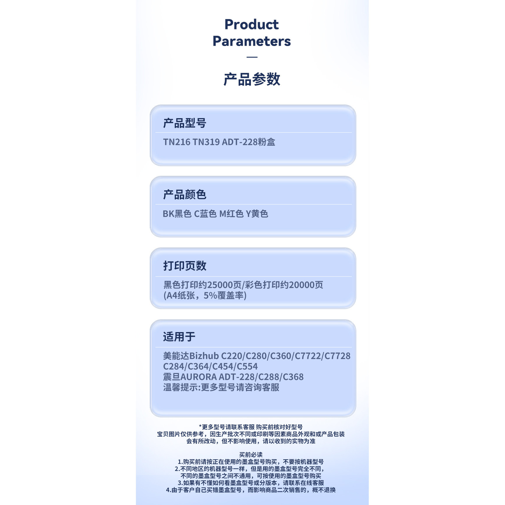 柯美C220墨粉C280 震旦ADC288 C360 C7728复印机墨盒 ADC368碳粉TN319 C7722 雄彩适用柯尼卡美能达TN216粉盒