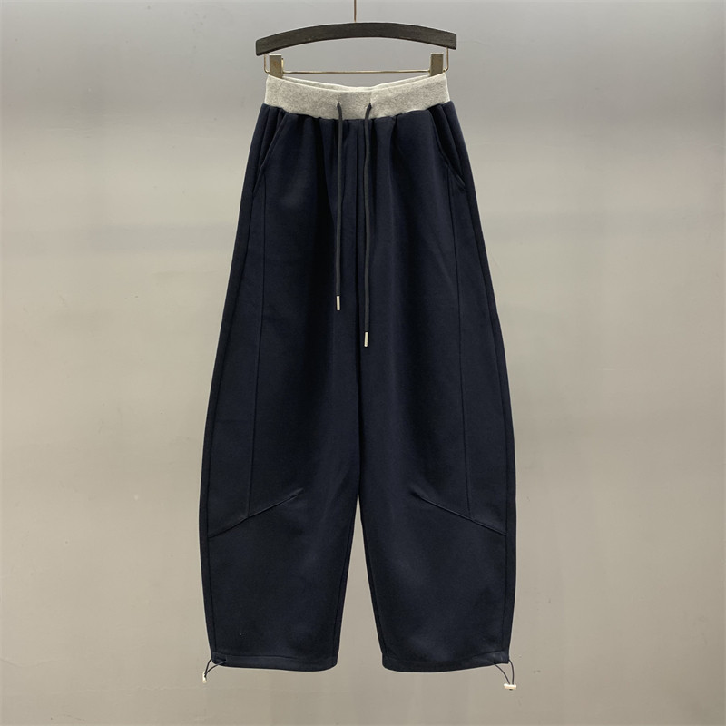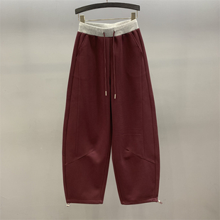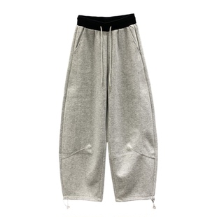 百搭宽松显瘦拖地阔腿弯刀裤 新款 女2025秋季 抽绳松紧腰休闲运动裤