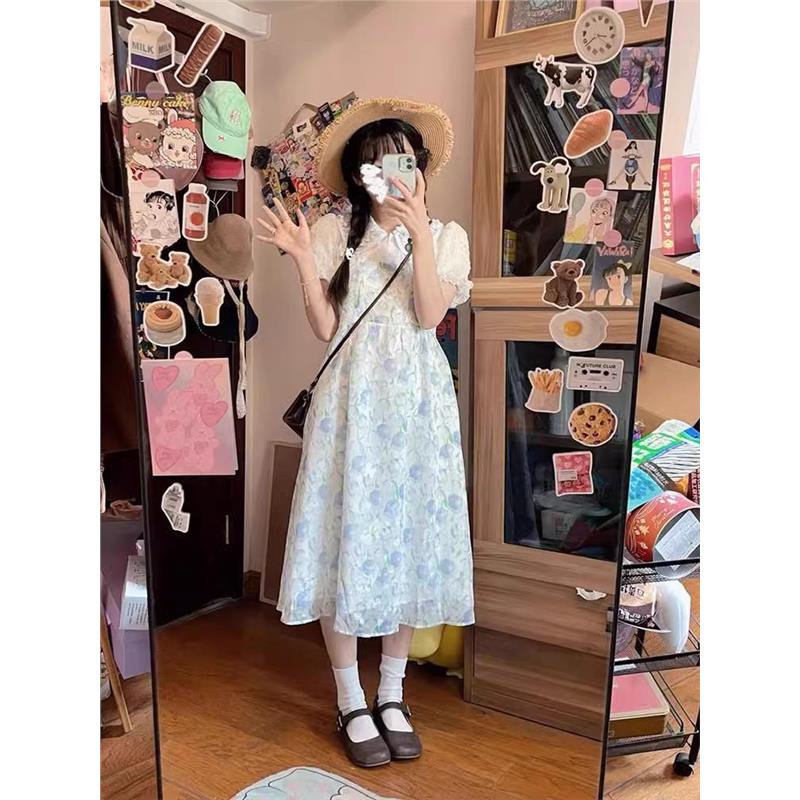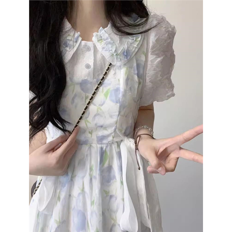 少女学院风娃娃领碎花连衣裙2025夏装 初中高中学生收腰长裙 新款