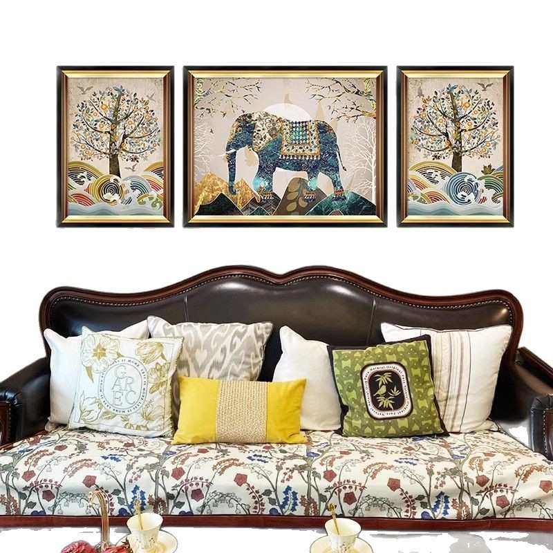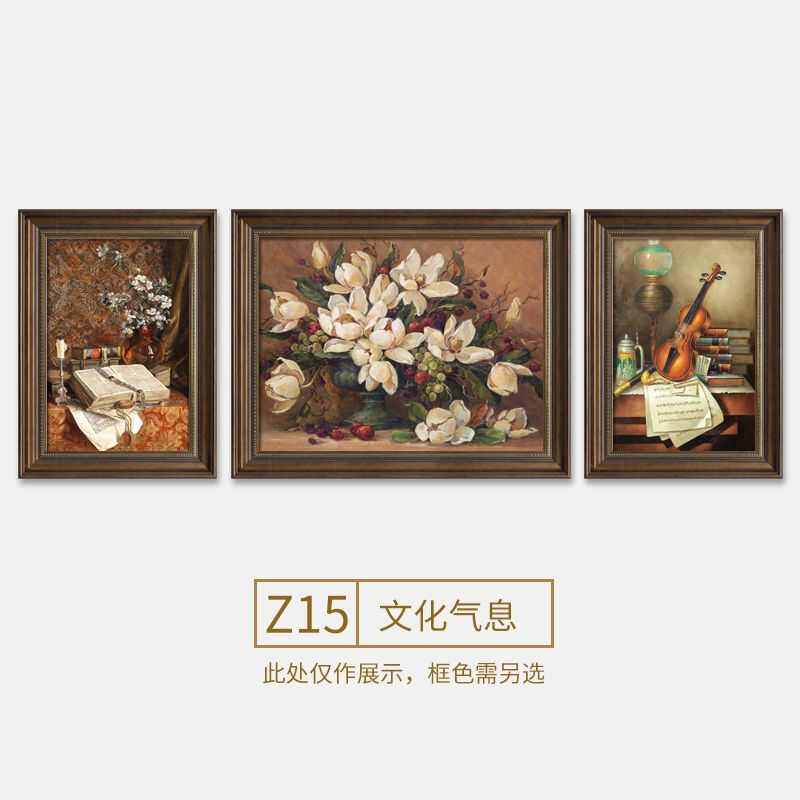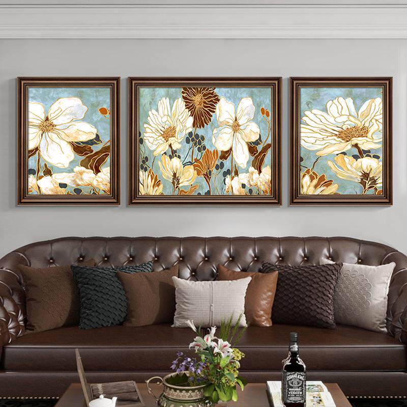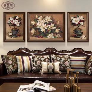 复古三联画轻奢壁画 饰画沙发背景墙挂画油画花卉欧式 美式 客厅装