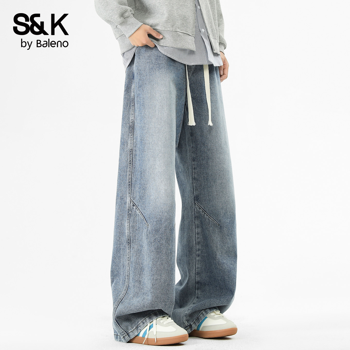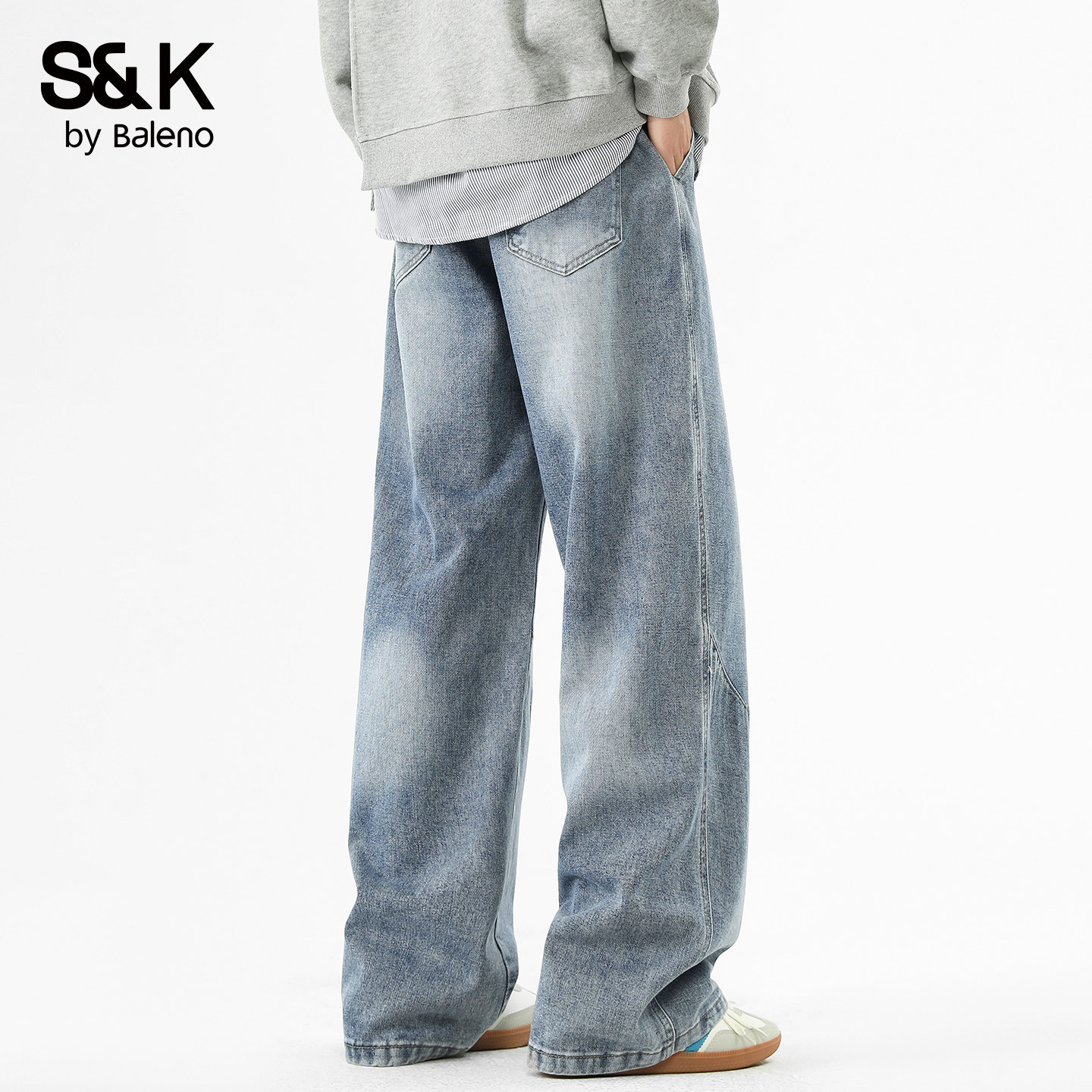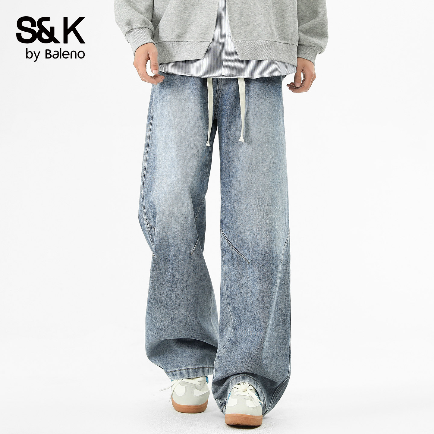 班尼路SK水洗牛仔裤 子男MS 男2025秋冬加绒加厚直筒宽松复古休闲裤