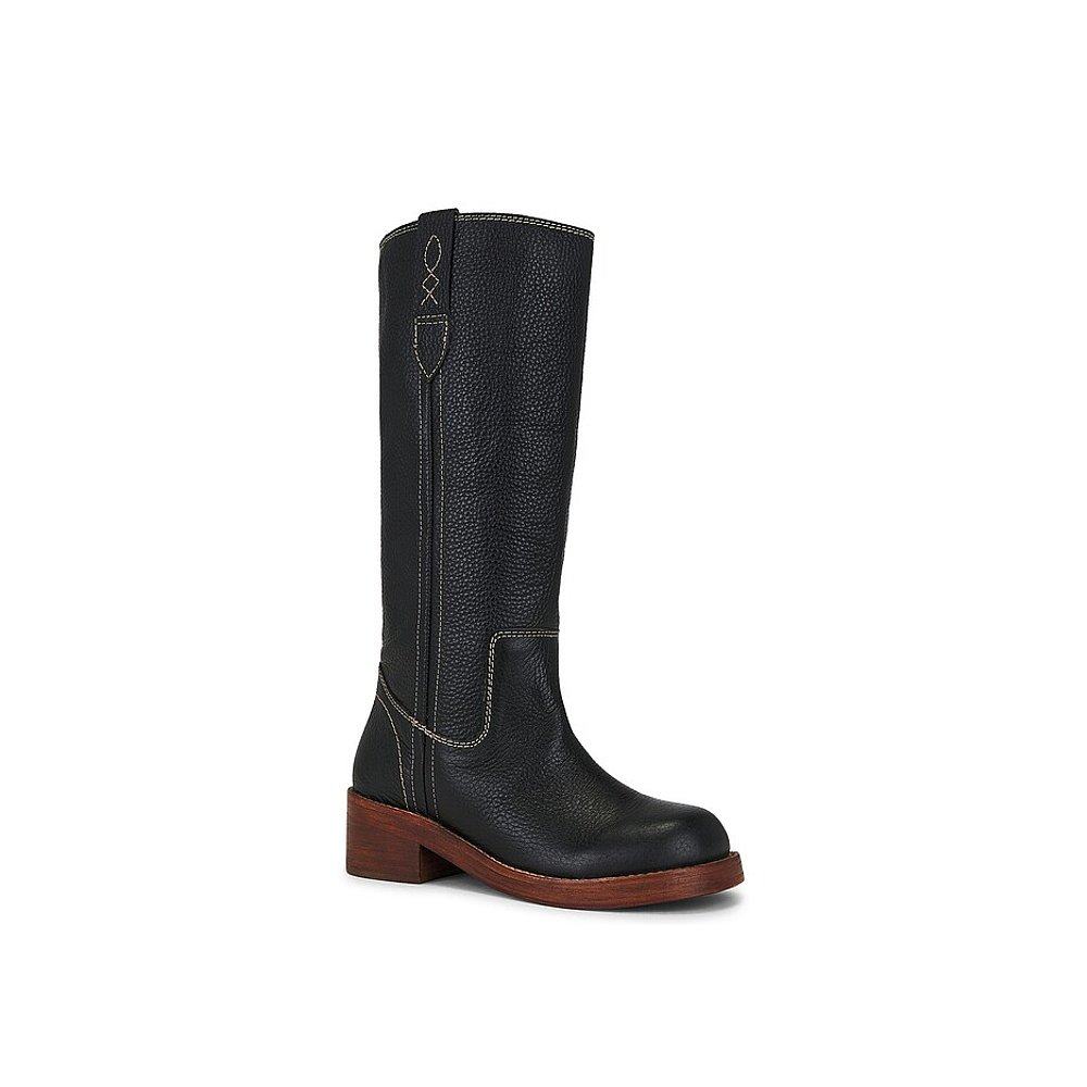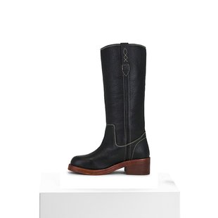 靴皮靴 时装 吴宣仪天美意千金靴复古厚底骑士靴加绒长靴女鞋 子新款