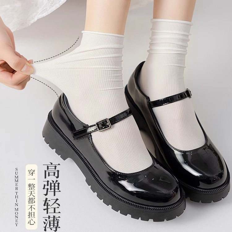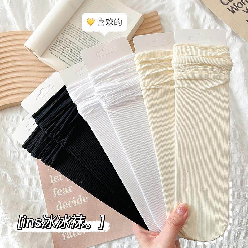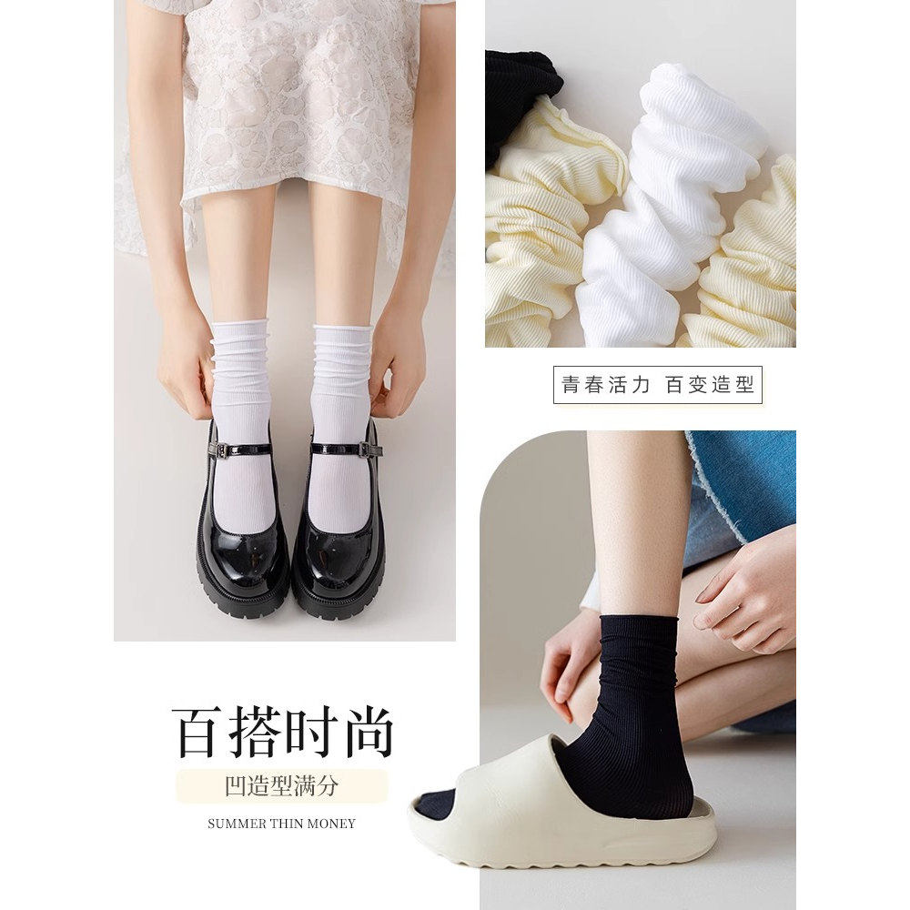 纯色中筒冰丝简约堆堆袜凉感搭配小皮鞋 黑白色冰冰袜子女夏季 薄款