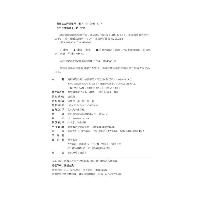 DSM 修订版 人民卫生 精神障碍诊断与统计手册 定价358元 第五版