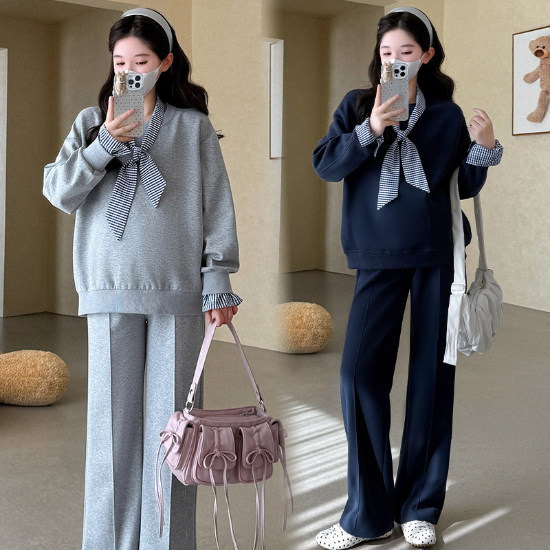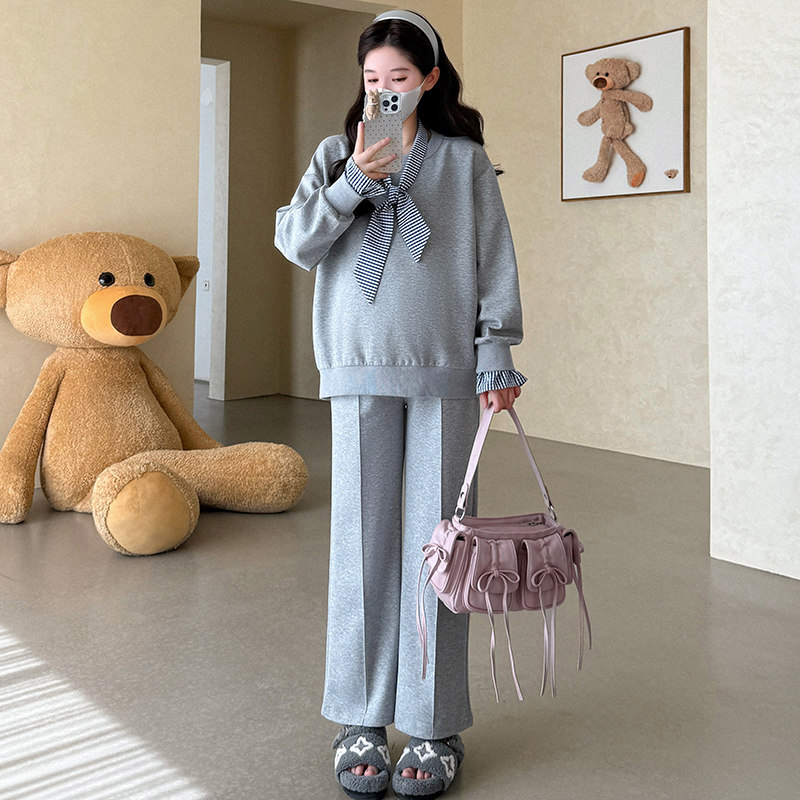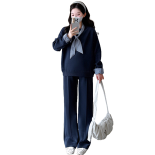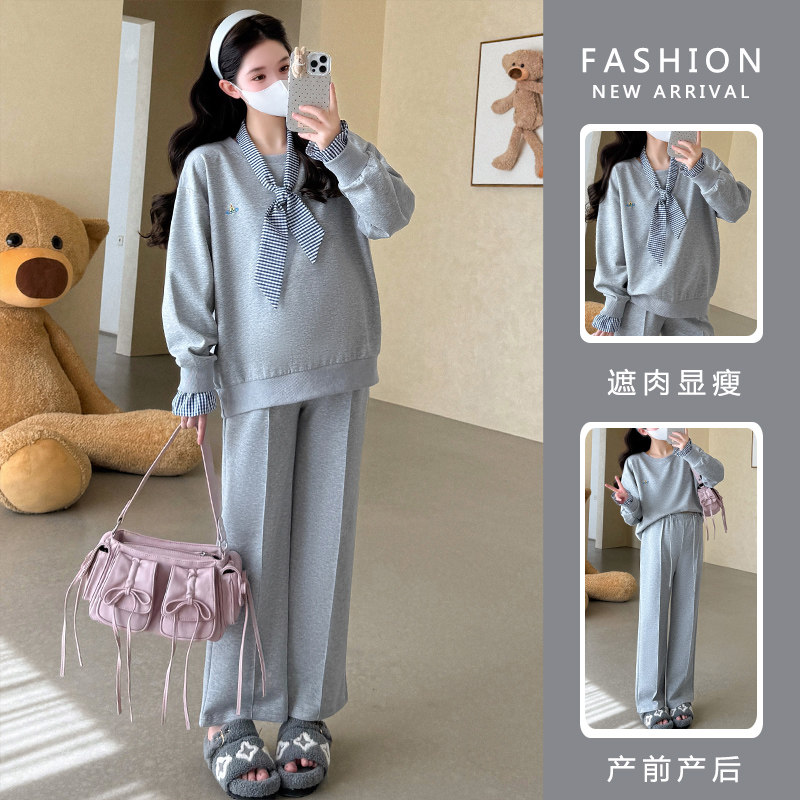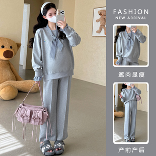 新款 2025年韩版 时尚 设计感上衣猪鼻扣阔腿裤 女 套装 孕妇春秋装