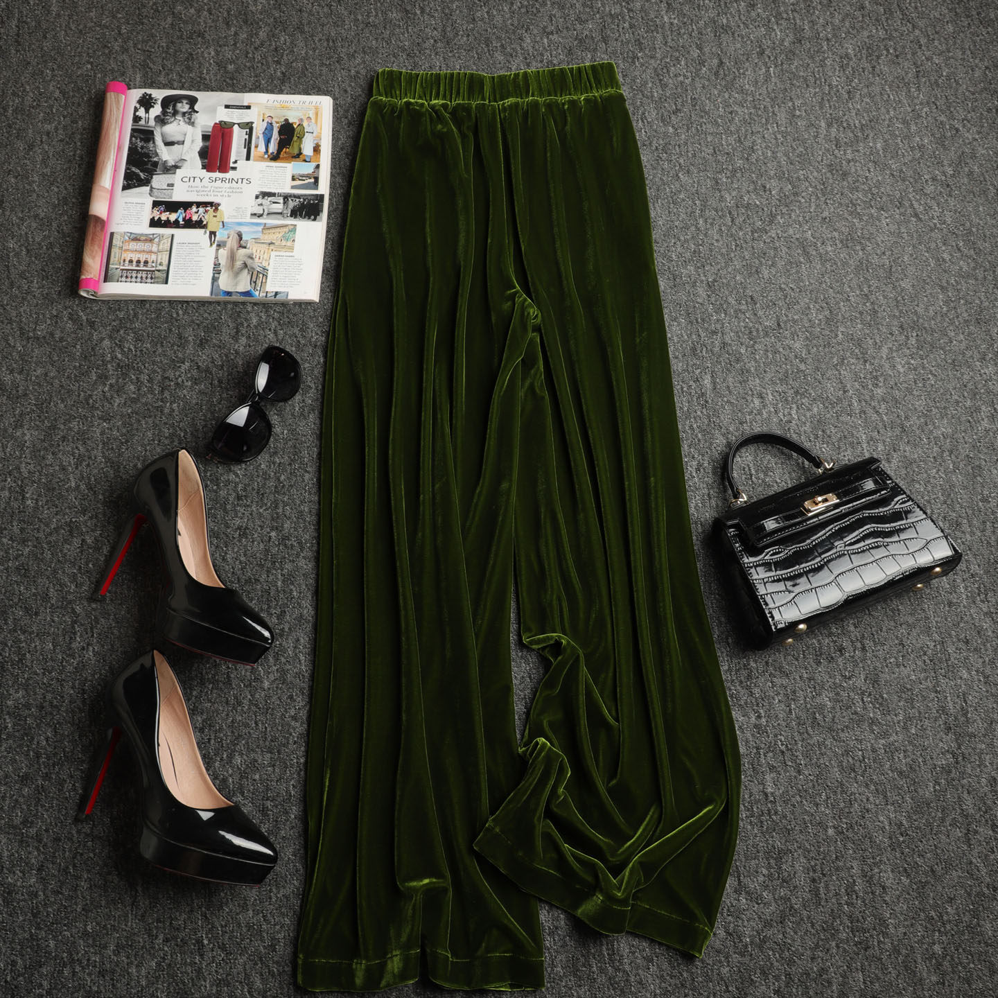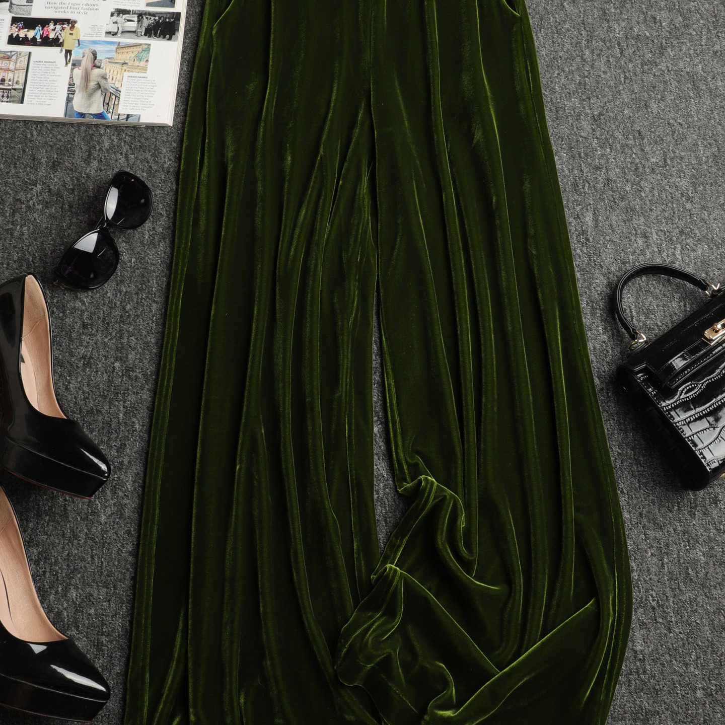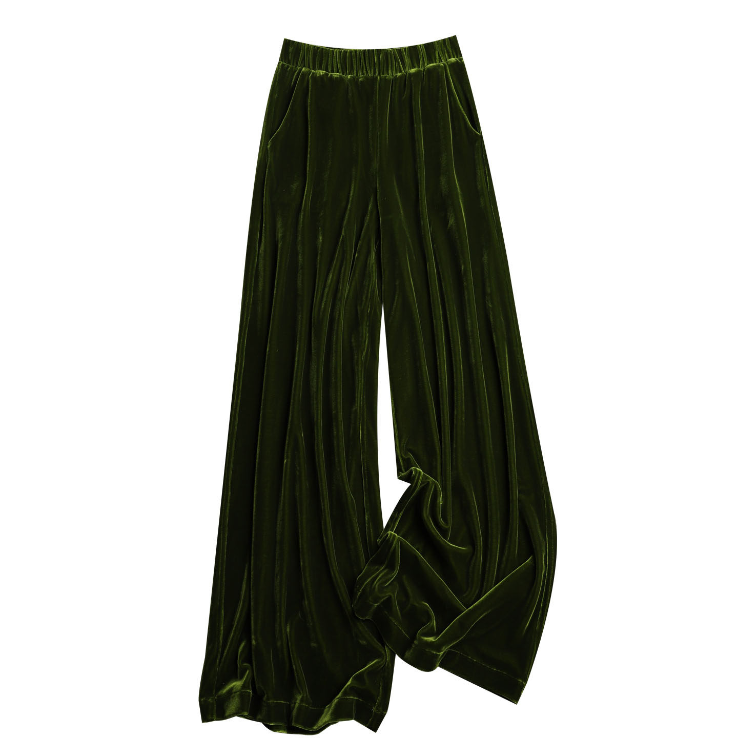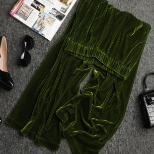 深芥末绿色丝绒裤 女直筒休闲裤 子女春季 阔腿裤 2026新款 色泽淳郁