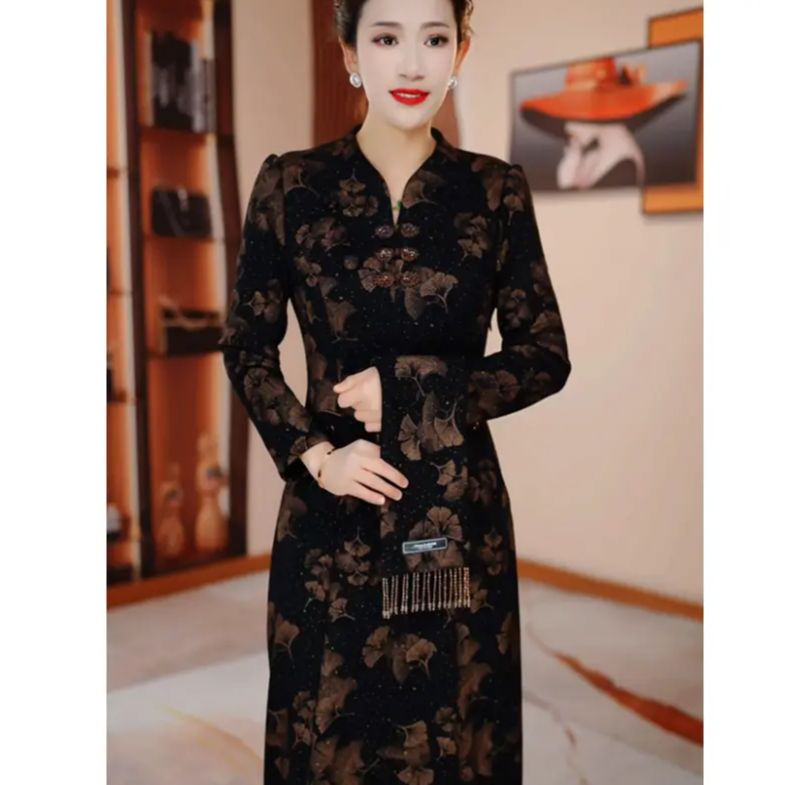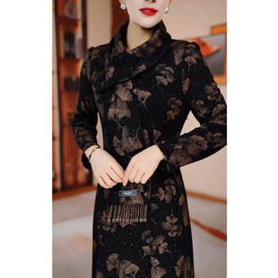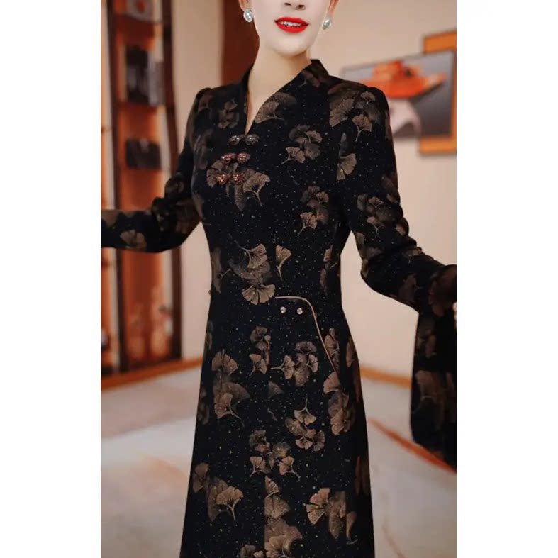 木兰棉加绒冬季 显瘦衣裙H5B564气质高雅改良旗袍国风 加厚修身