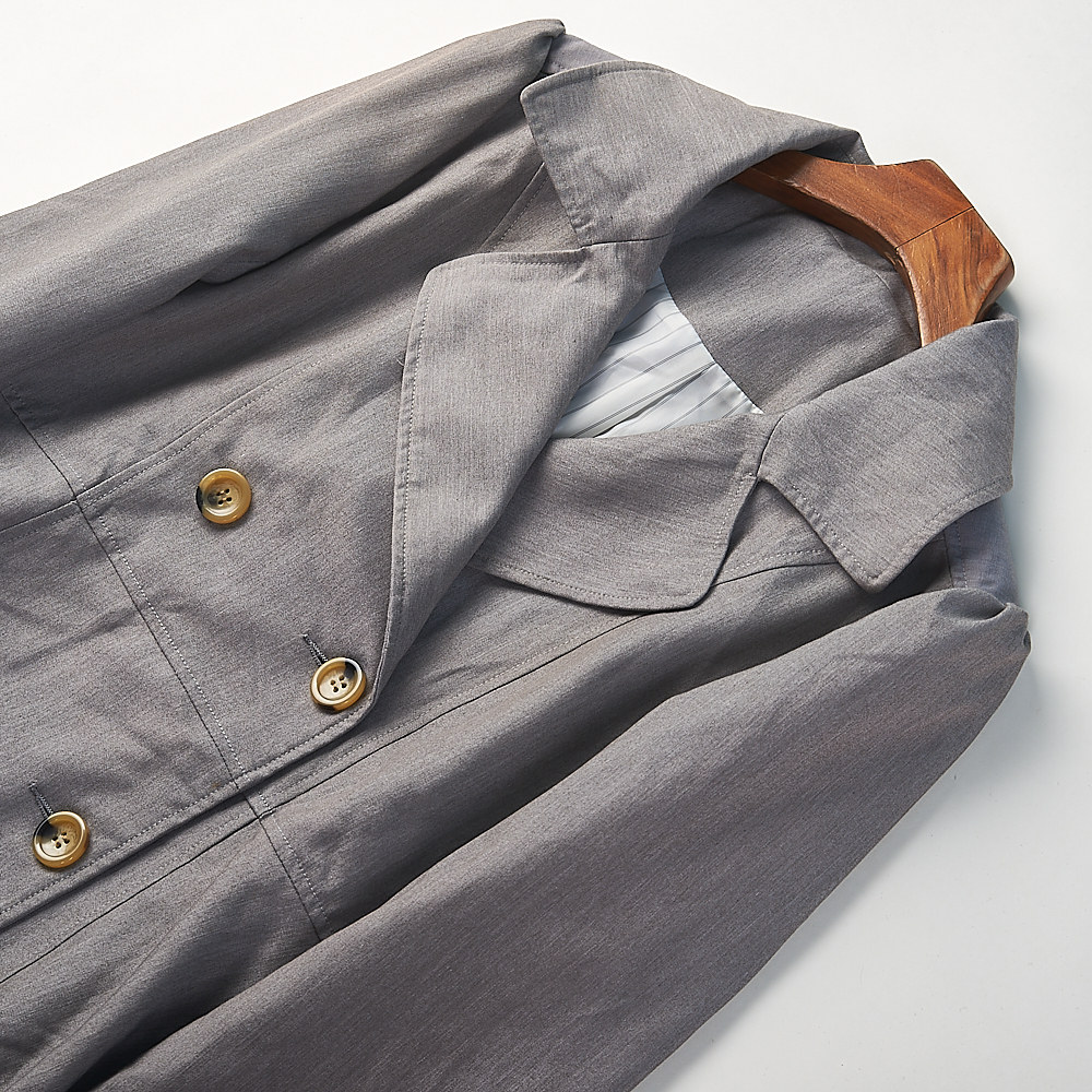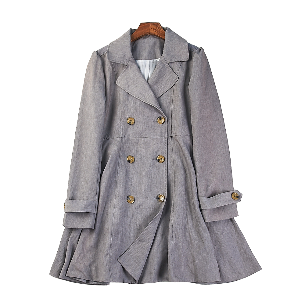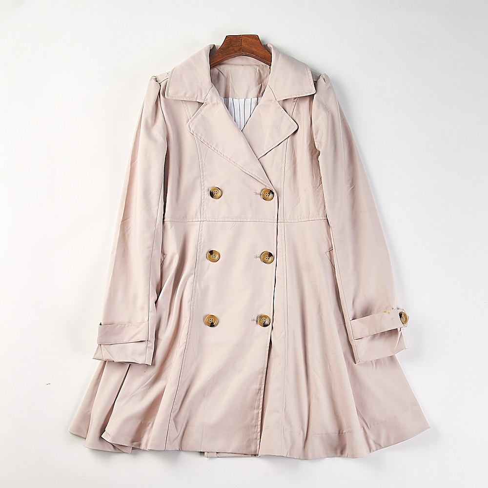 日单剪镖双排扣中长款 领收腰气质ol通勤外套 风衣女H84680春秋西装