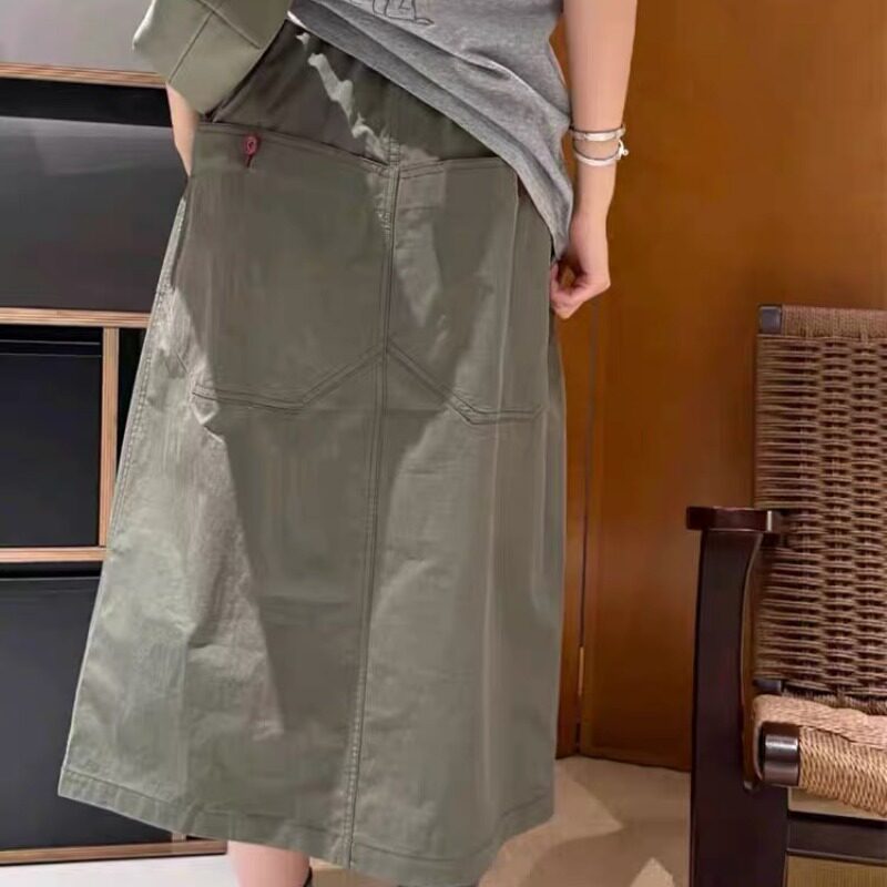 半身裙女胖mm显瘦百搭休闲中长裙 高腰设计感大兜工装 大码 早春薄款