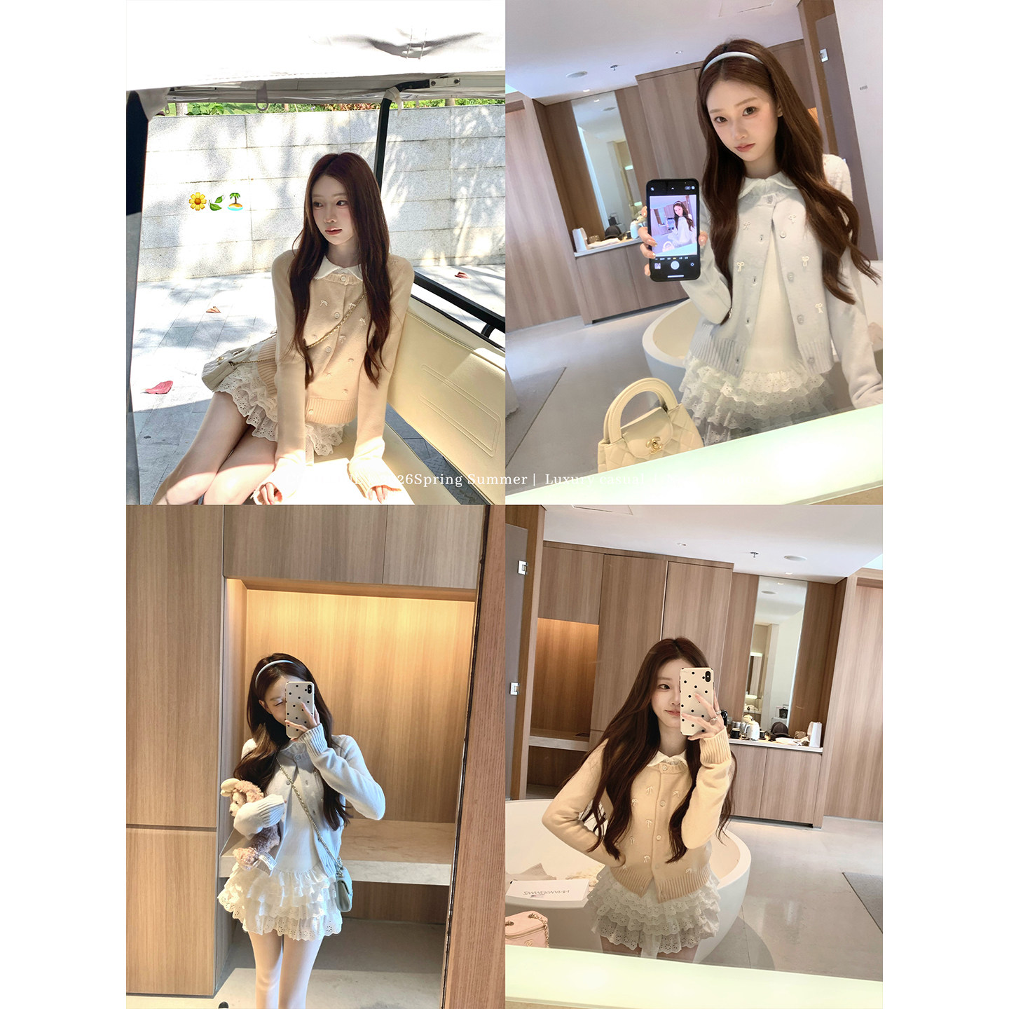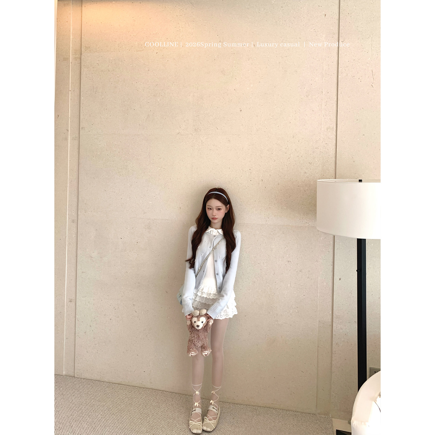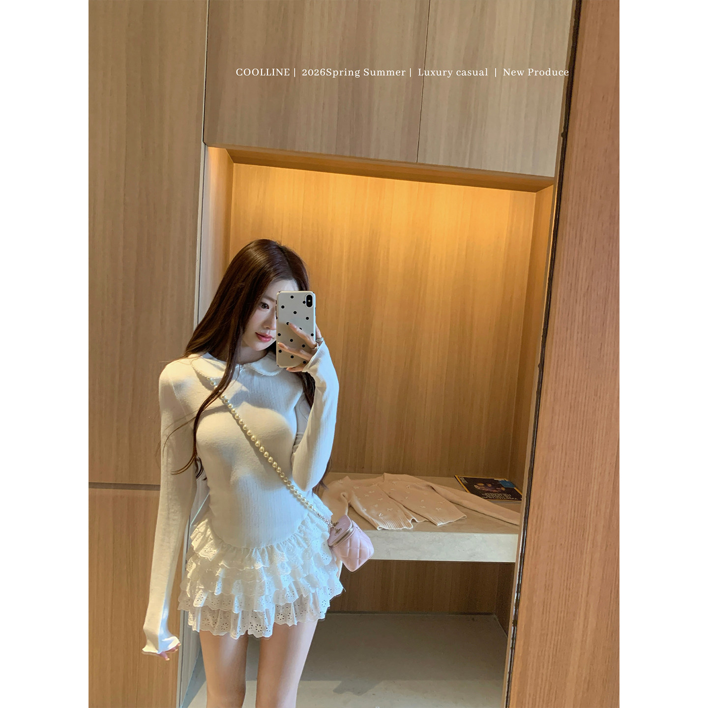 英同款 COOLLINE林子熙 元 香气 娃娃领白色蛋糕裙收腰连衣裙 女神
