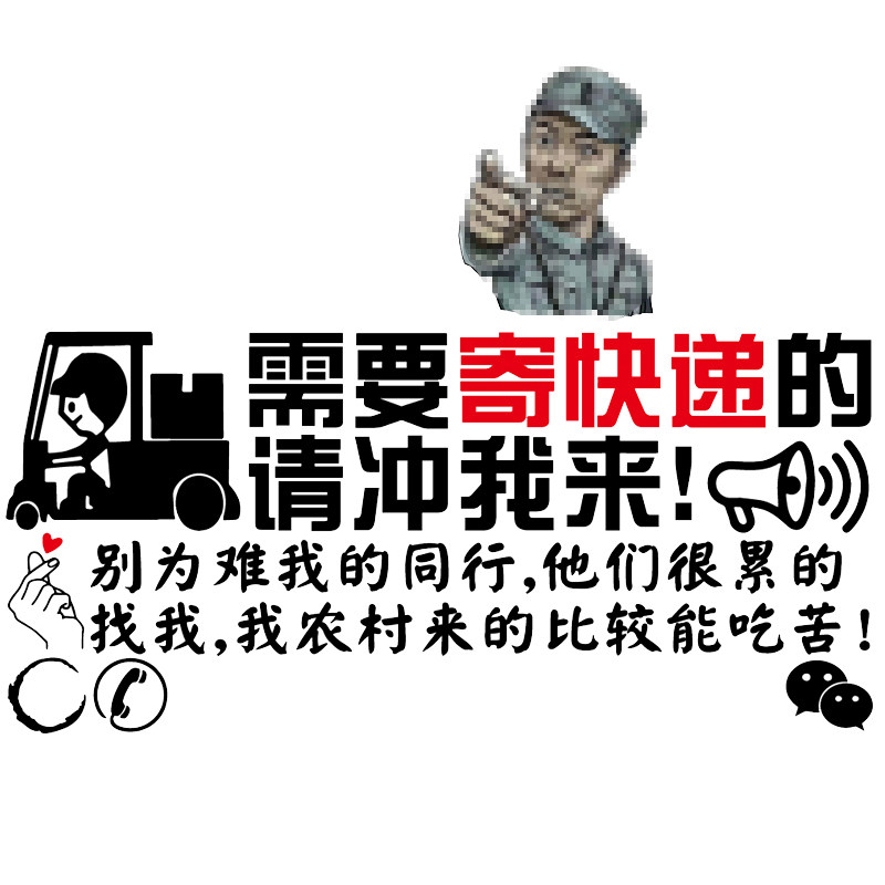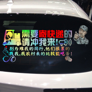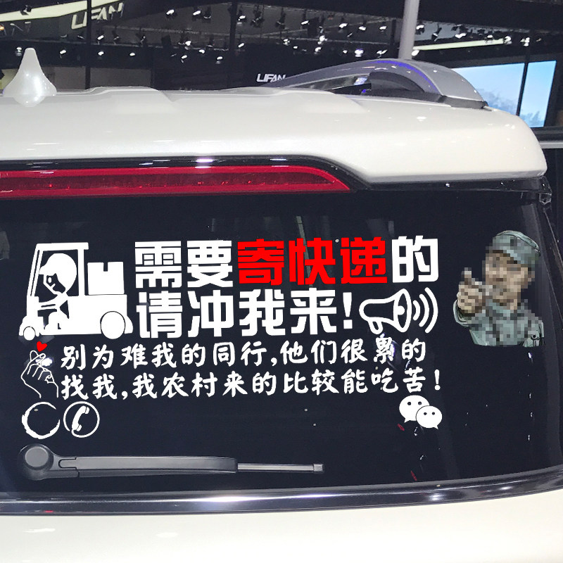 个性 卓鹿 请冲我来 需要寄快递 创意广告汽车贴纸 寄快递车贴