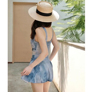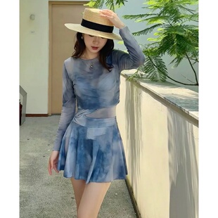 扎染保守显瘦泡温泉泳装 泳衣女款 外纱防晒时尚 两件套长袖 连体裙式