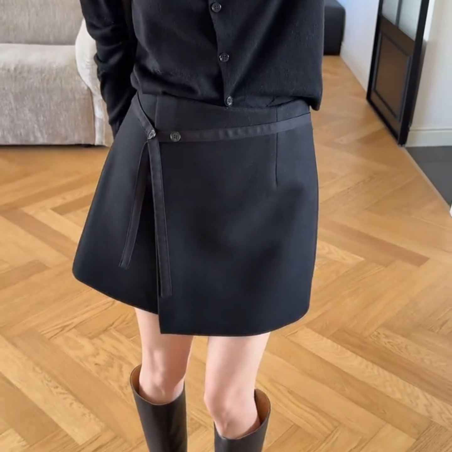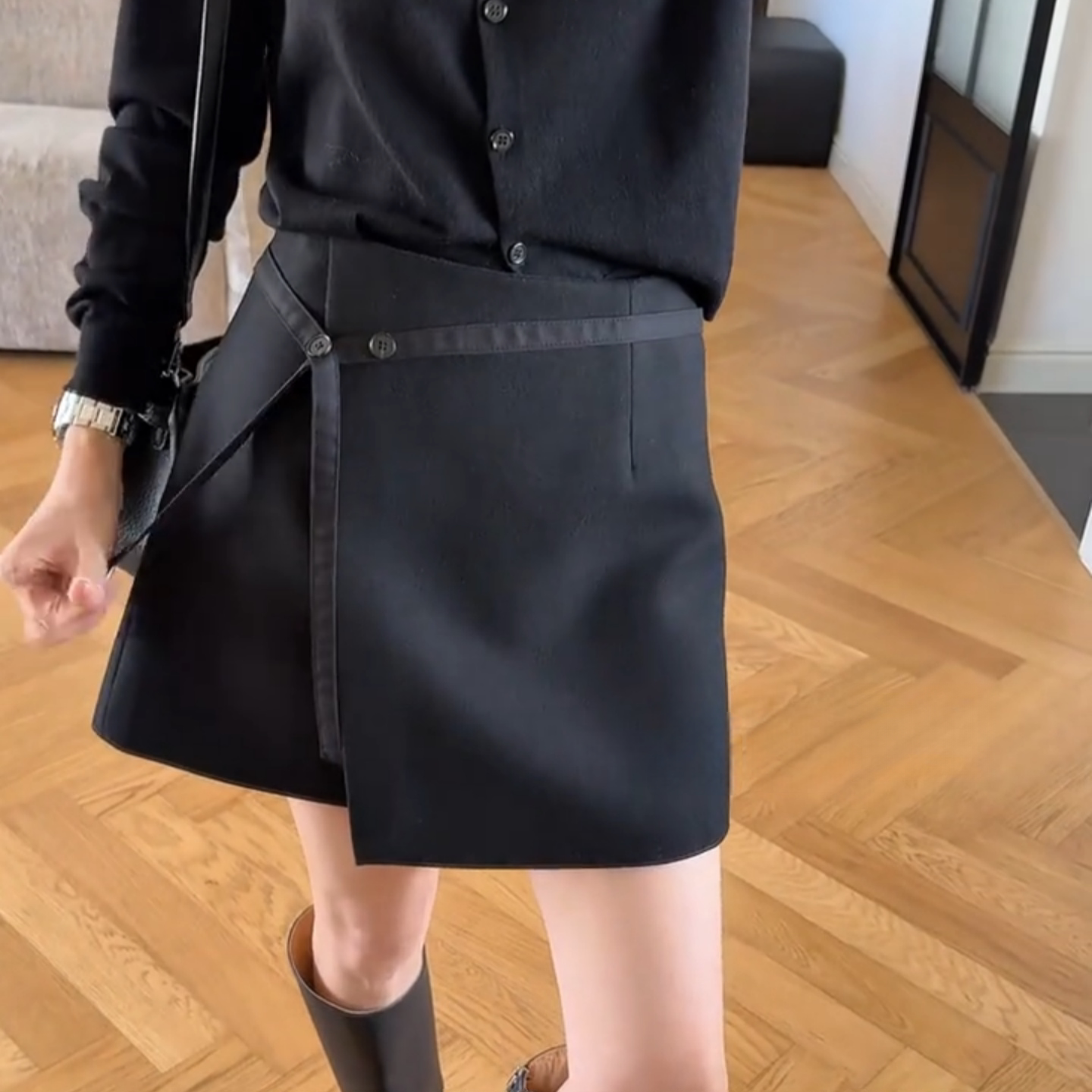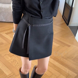 梨形身材大码 新款 高腰显瘦半身A字裙 半身短裙女春季 高级黑色西装