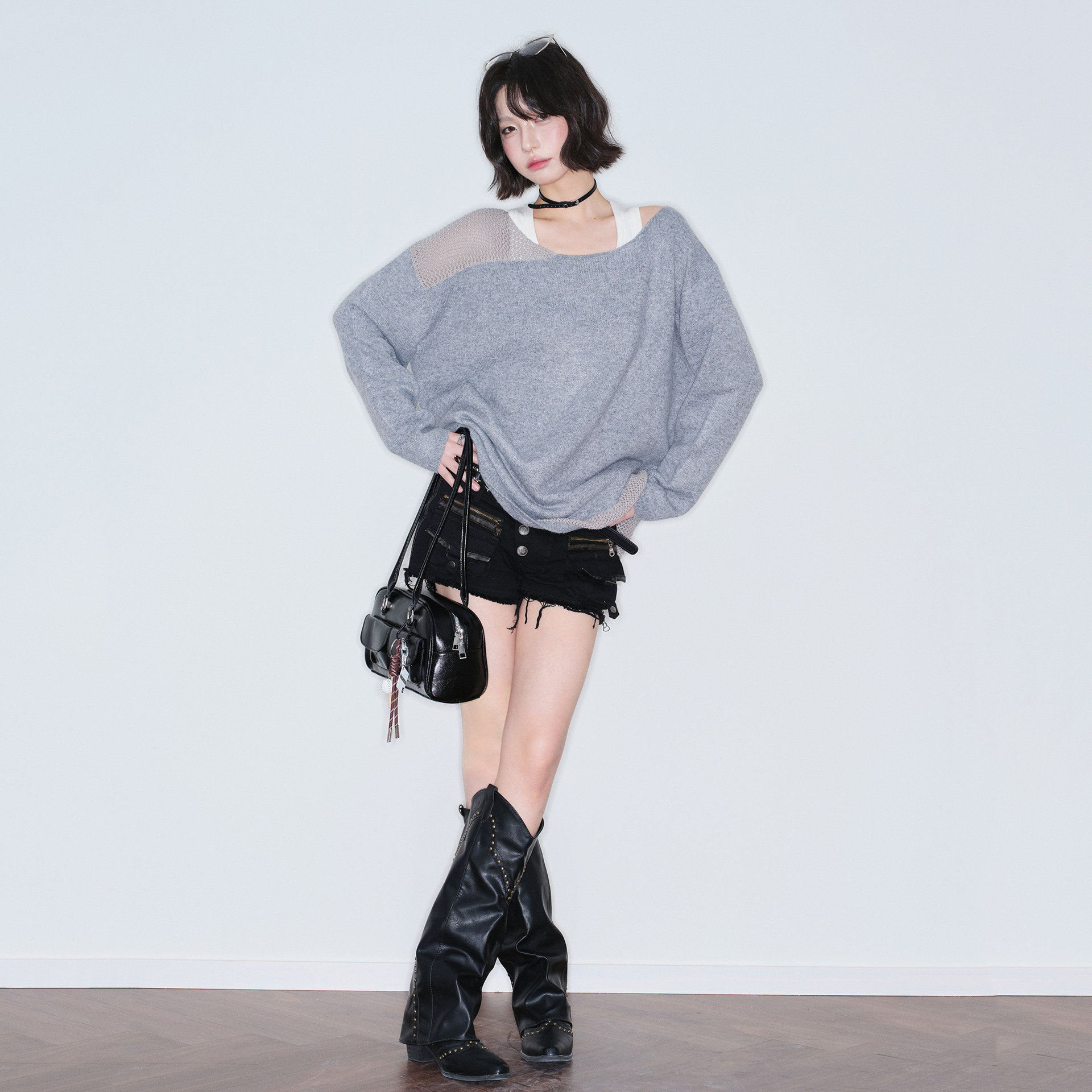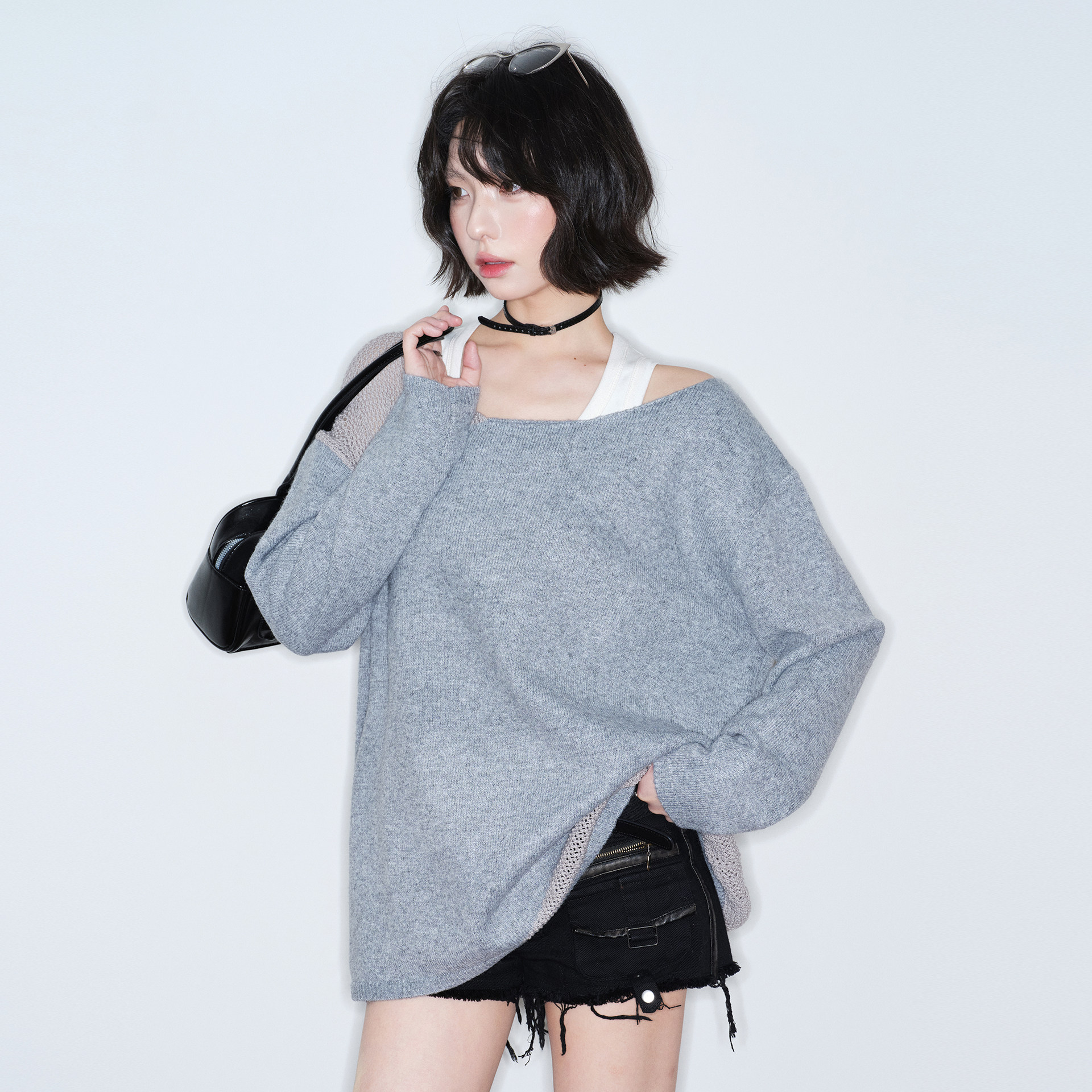 原创设计镂空露肩毛衣女 ü线下店同款 万有引力博物馆 wink