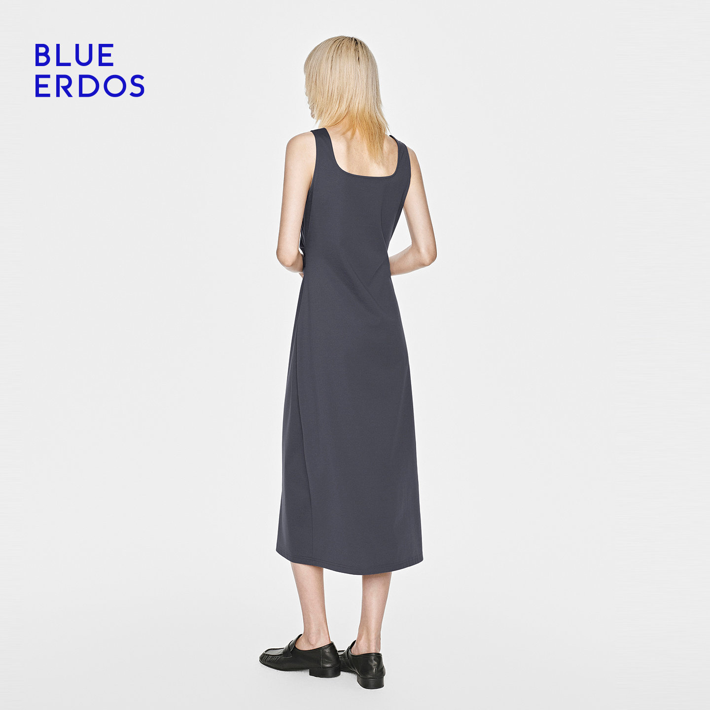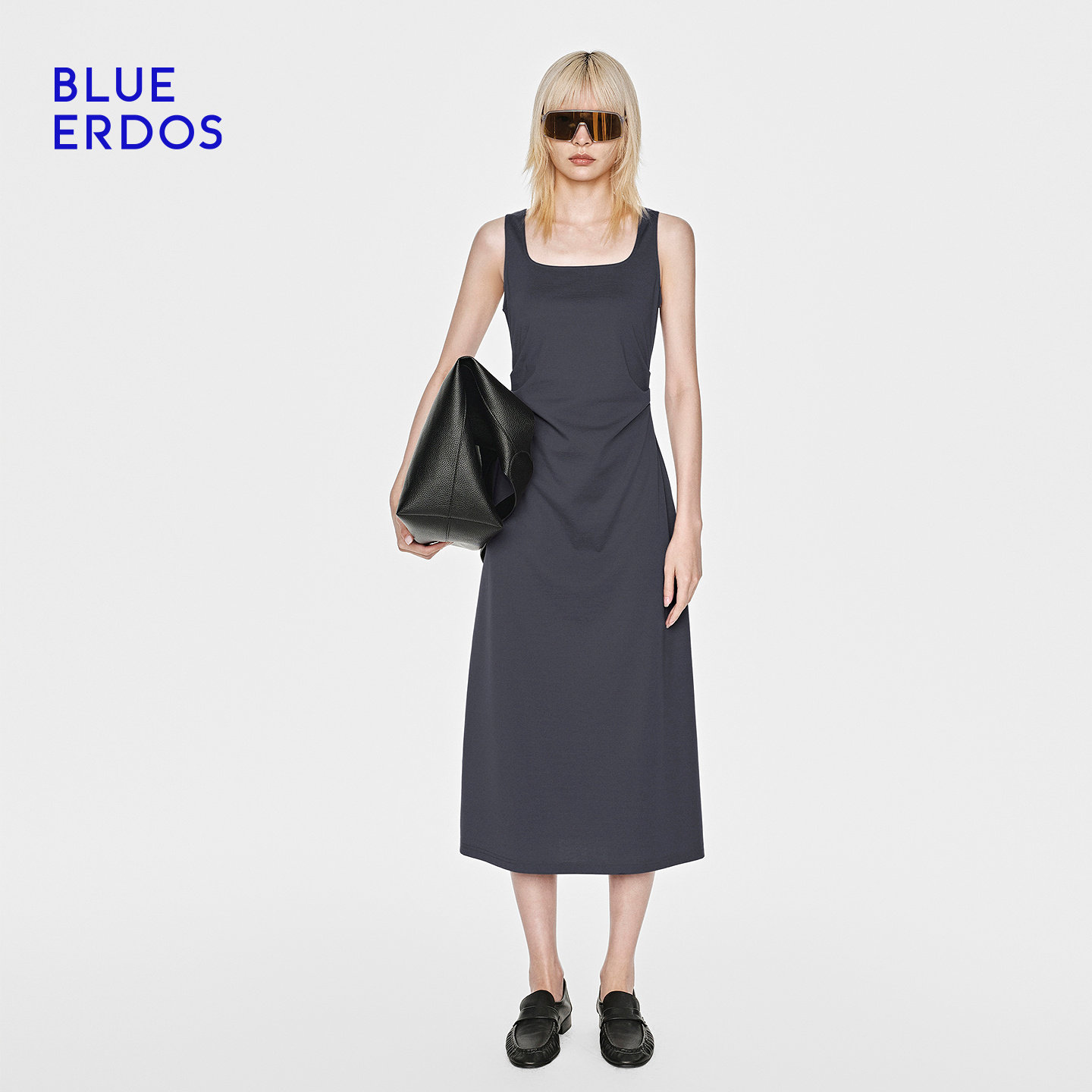 收腰褶皱连衣裙女 休闲百搭莱赛尔混纺背心式 BLUE ERDOS26早春新品