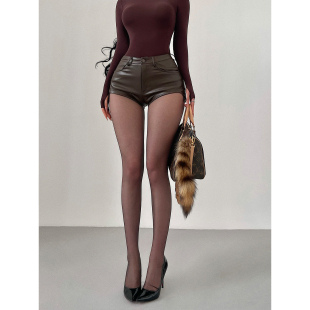 热裤 YoungGirlDay辣妹性感高腰显瘦提臀丰胯裤 弧形显腿长PU皮短裤