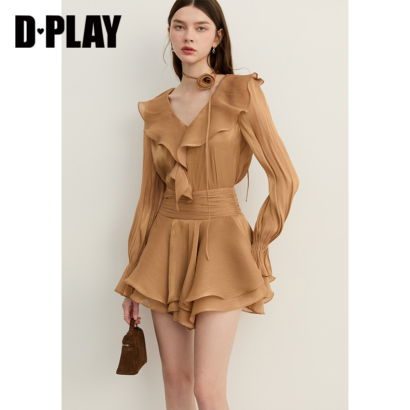 千金感裙子 新款 DPLAY流光棕色荷叶边半身裙气质法式 半裙2026春季