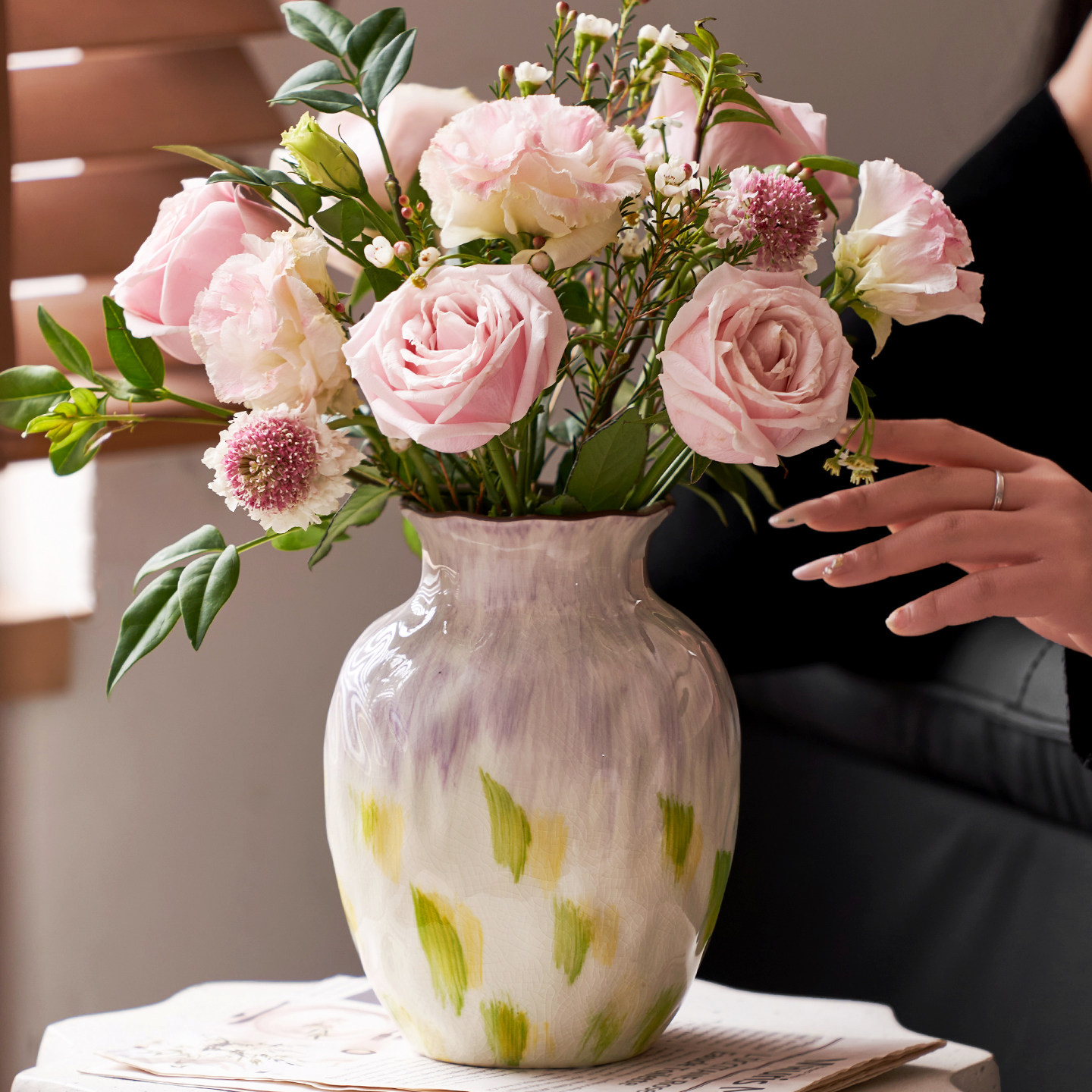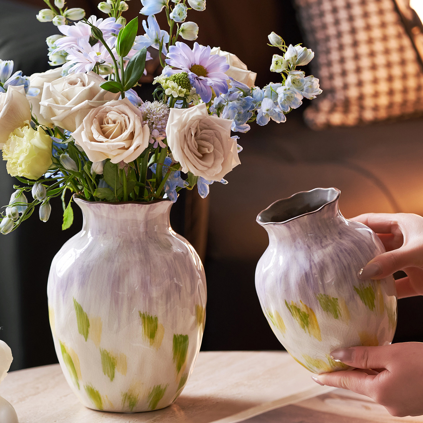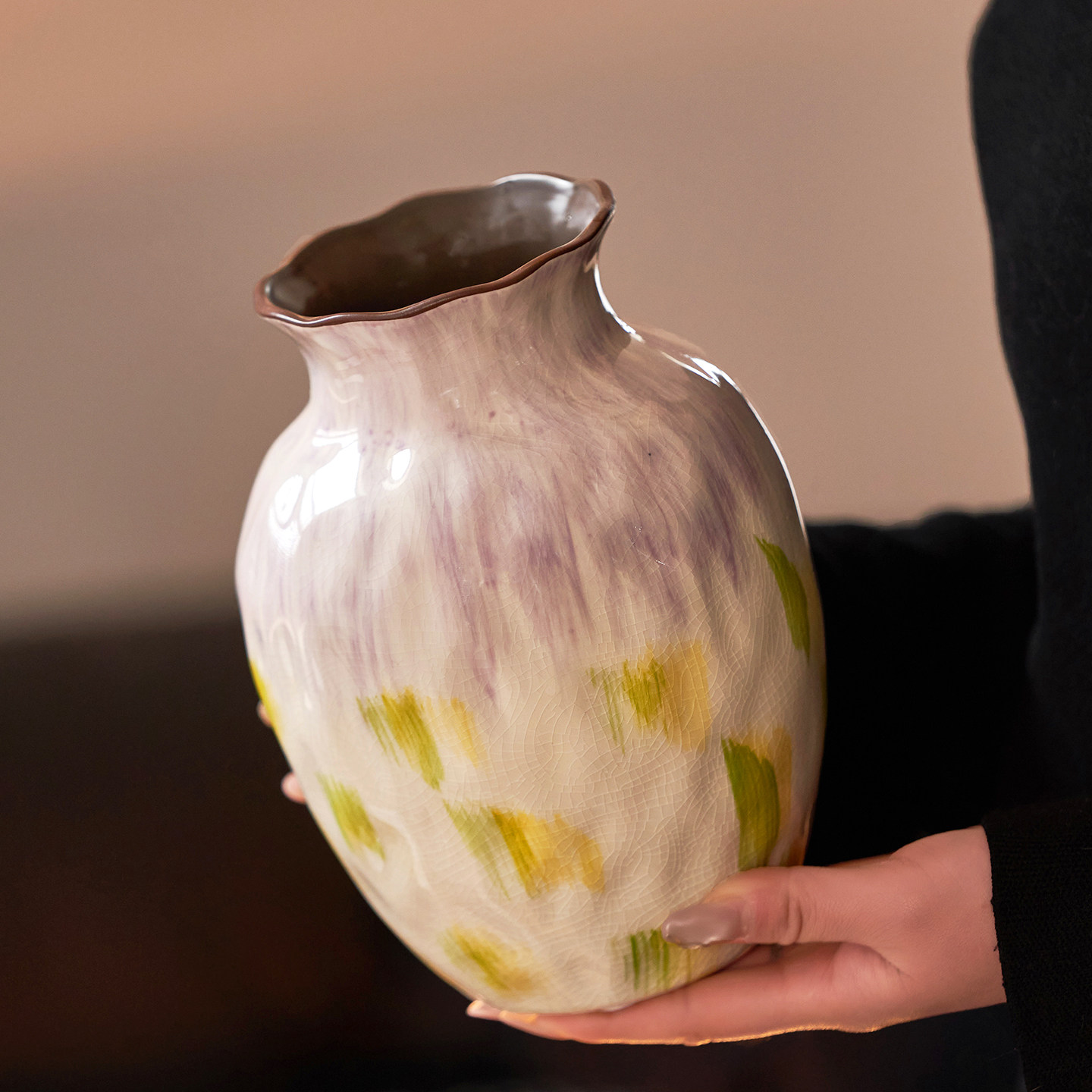 法式 饰品高级感摆件水培 复古彩色大肚陶瓷花瓶中古风家居客厅软装