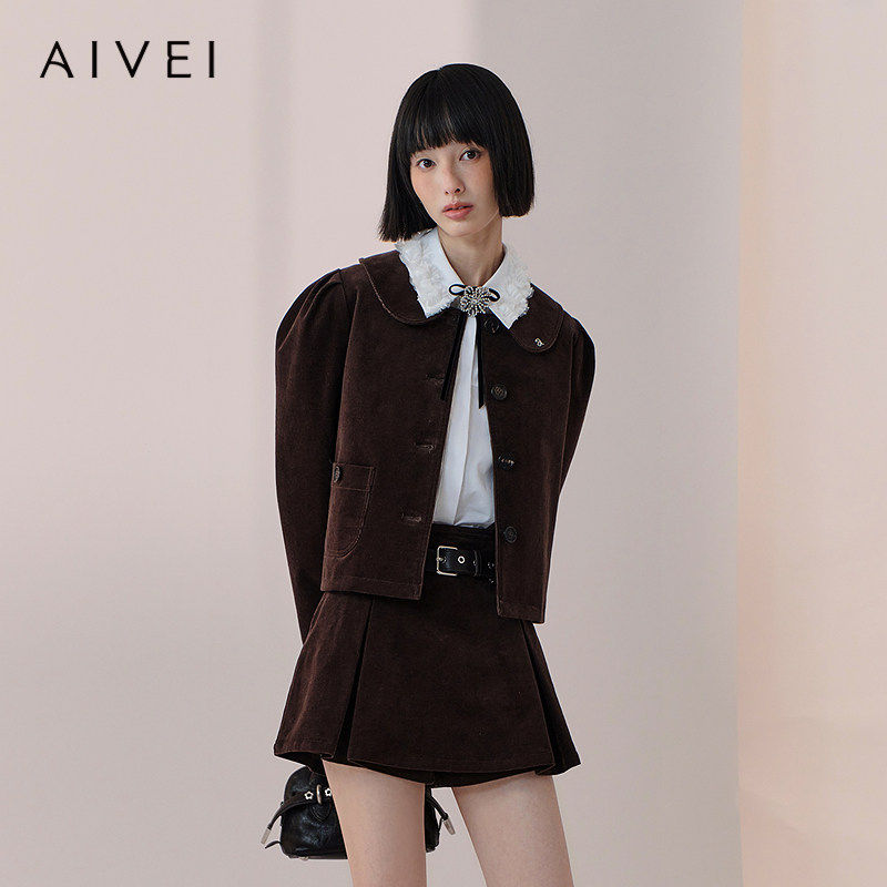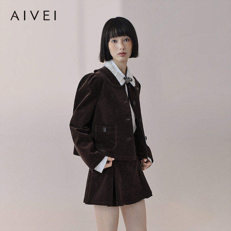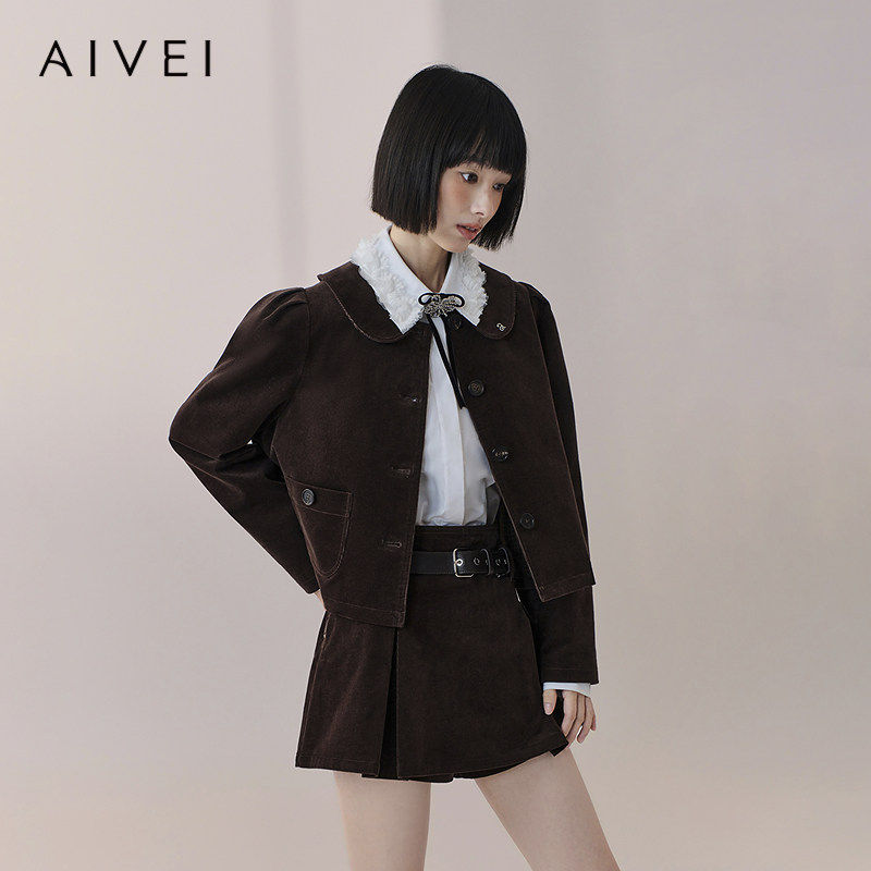 AIVEI欣贺艾薇2026春季 复古英伦学院风娃娃领灯芯绒外套XSV1W10B