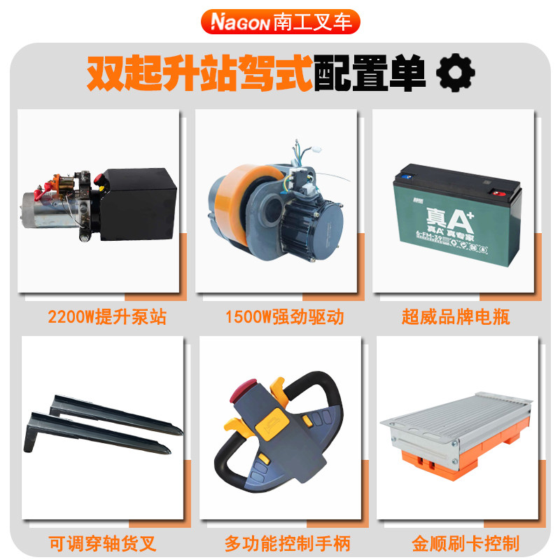 全电动叉车2吨双起升站驾堆高车托盘搬运车仓库升降装 卸车堆垛车