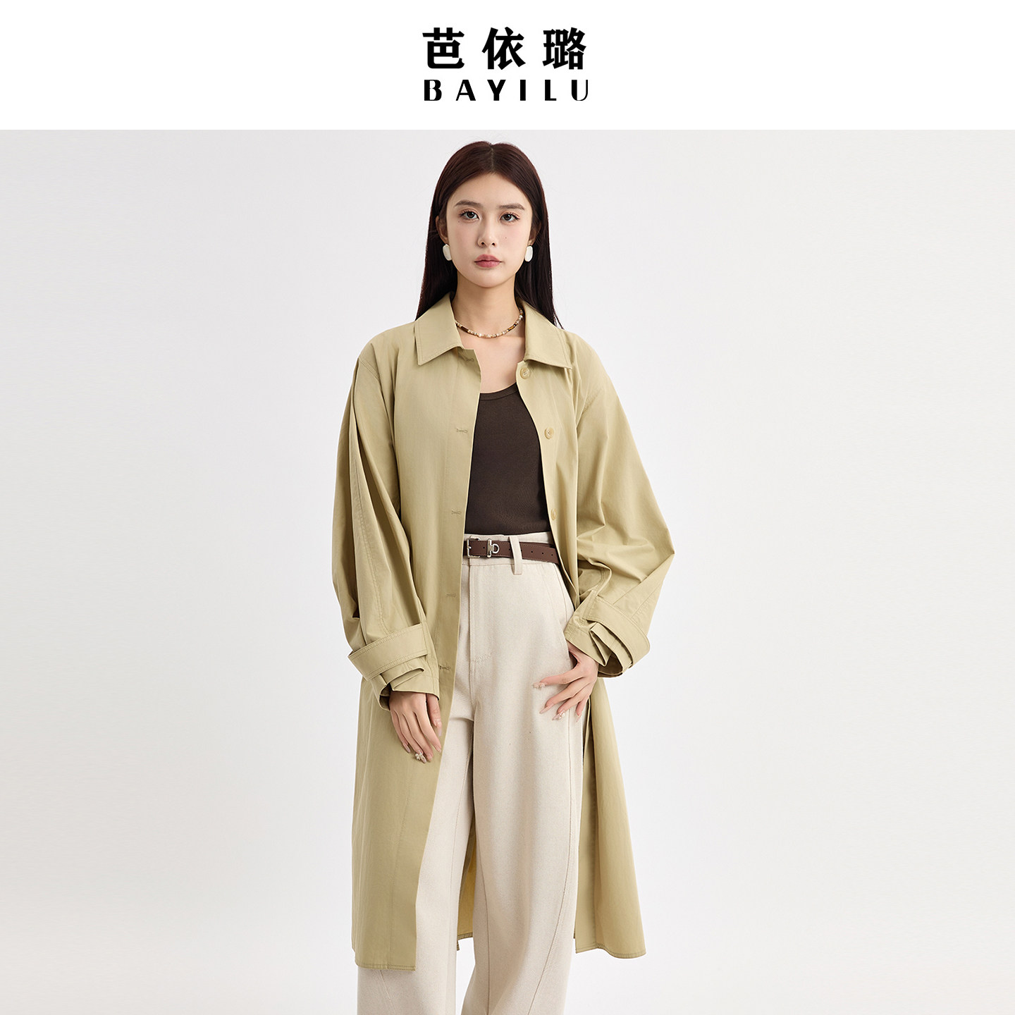 通勤气质时尚 新款 卡其百搭外套 风衣2026春季 芭依璐简约休闲中长款
