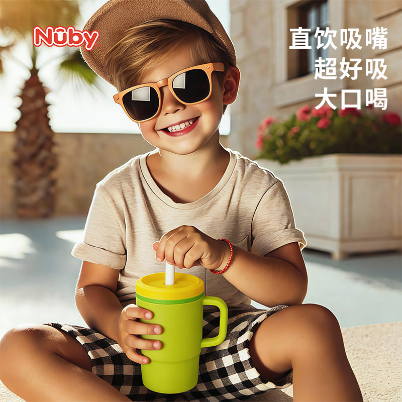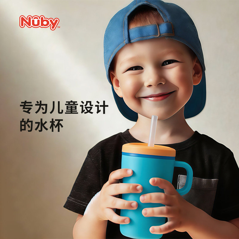 Nuby努比儿童迷你全硅胶巨无霸吸管杯带手柄儿童水杯直饮杯300ml
