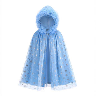 儿童斗篷秋冬蓝色冰雪奇缘女童爱莎公主披风加绒连帽外套COS表演