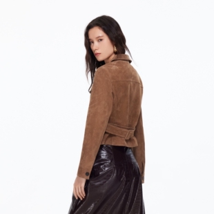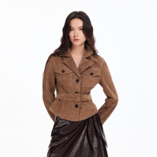 翻领腰带皮革外套通勤休闲326110002 新款 Vero Moda皮衣女26春季