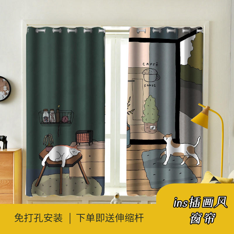 2025新款 全遮光窗帘遮阳布卧室成品阳台隔热防晒窗户简易帘免打孔