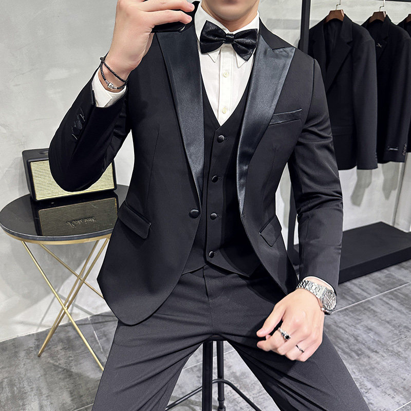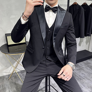 金竹刺绣男孩成人礼服西装 新中式 国风立领中山装 订婚衣服套装 男士