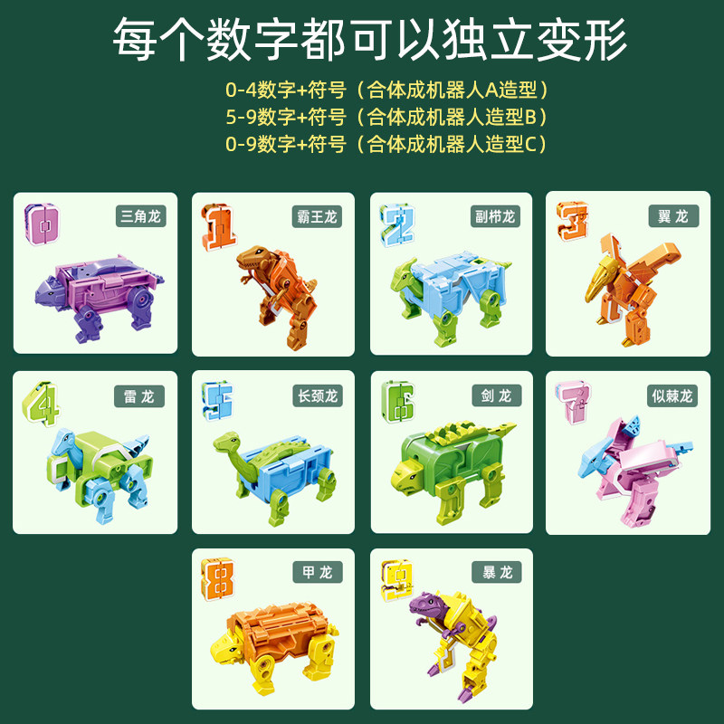 数字变形机器人玩具儿童4男孩5字母金刚合体益智3百变战队6岁恐龙
