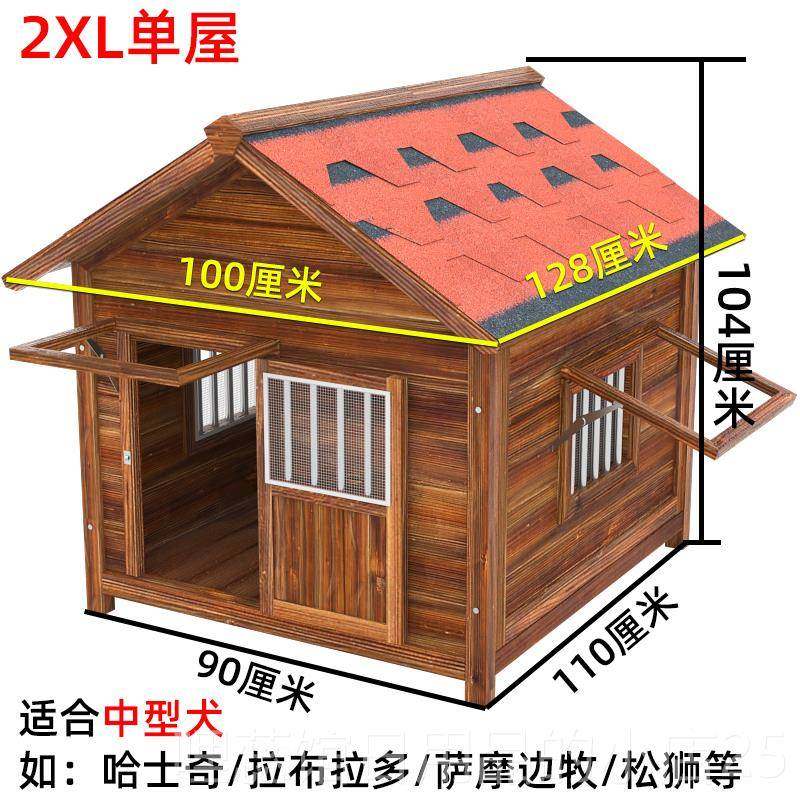 高档冬实木狗屋室外防雨制木狗窝房子水狗笼大型犬舍户外四季 保 季