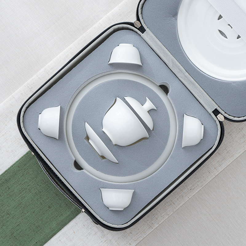 潮汕工夫茶具 兴泥匠 便携冲茶器 户外旅行 6寸茶盘 薄胎骨瓷茶具