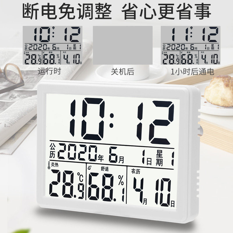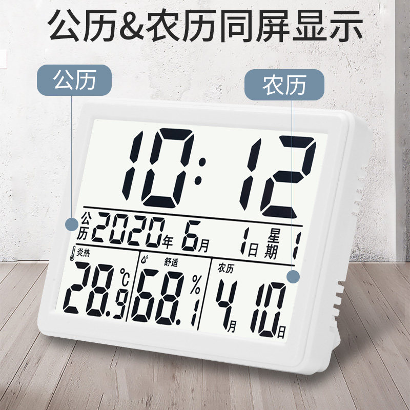 壁挂磁吸冰箱贴电子数显时钟闹钟温湿度计自动夜光大屏幕农历家用