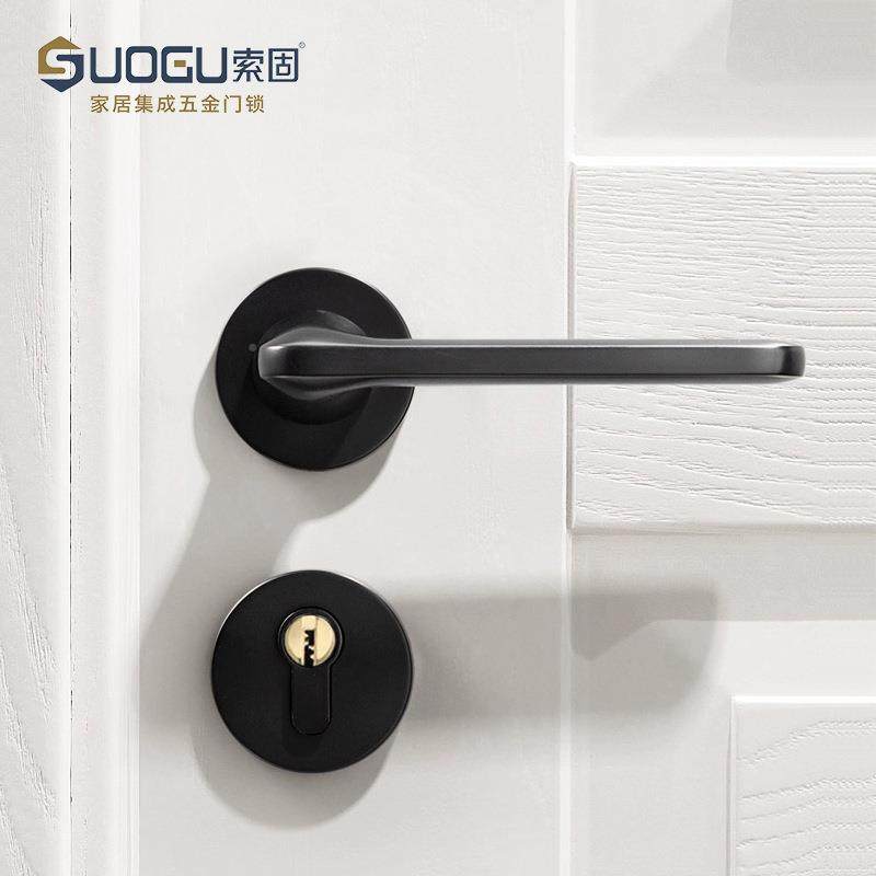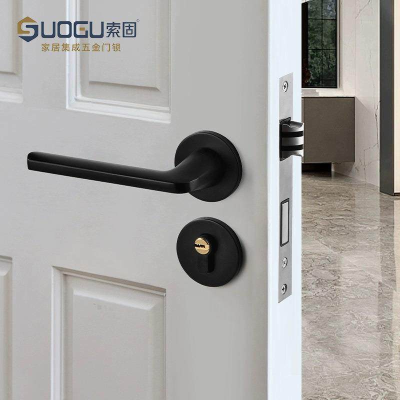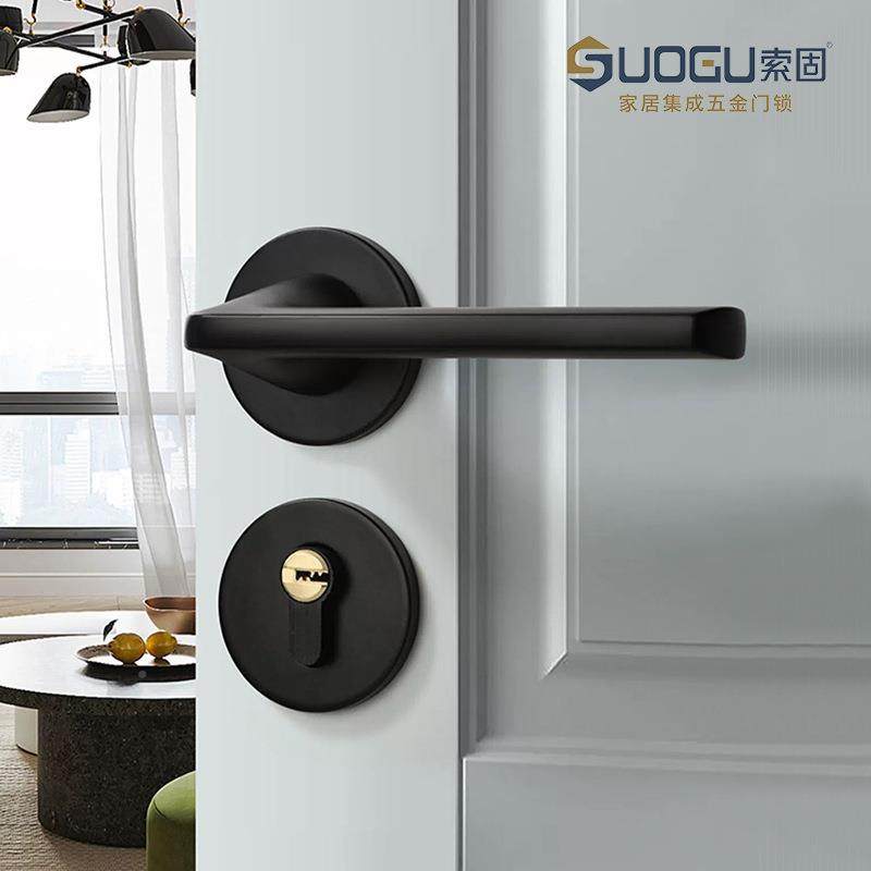 黑色门室内家用房间门锁磁音吸静卧锁室MLC门把手分体锁门具木锁
