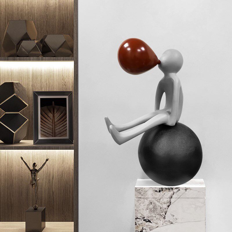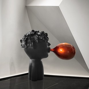 现代卡通大型落地软装 置 吹泡泡人物雕塑摆件玄关大堂样板房艺术装