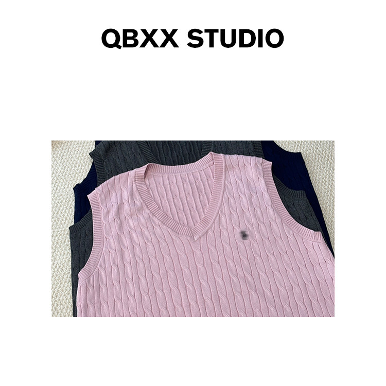 针织马甲外套 叠穿百搭显瘦V领复古大码 铅笔小鑫大码 女装