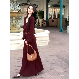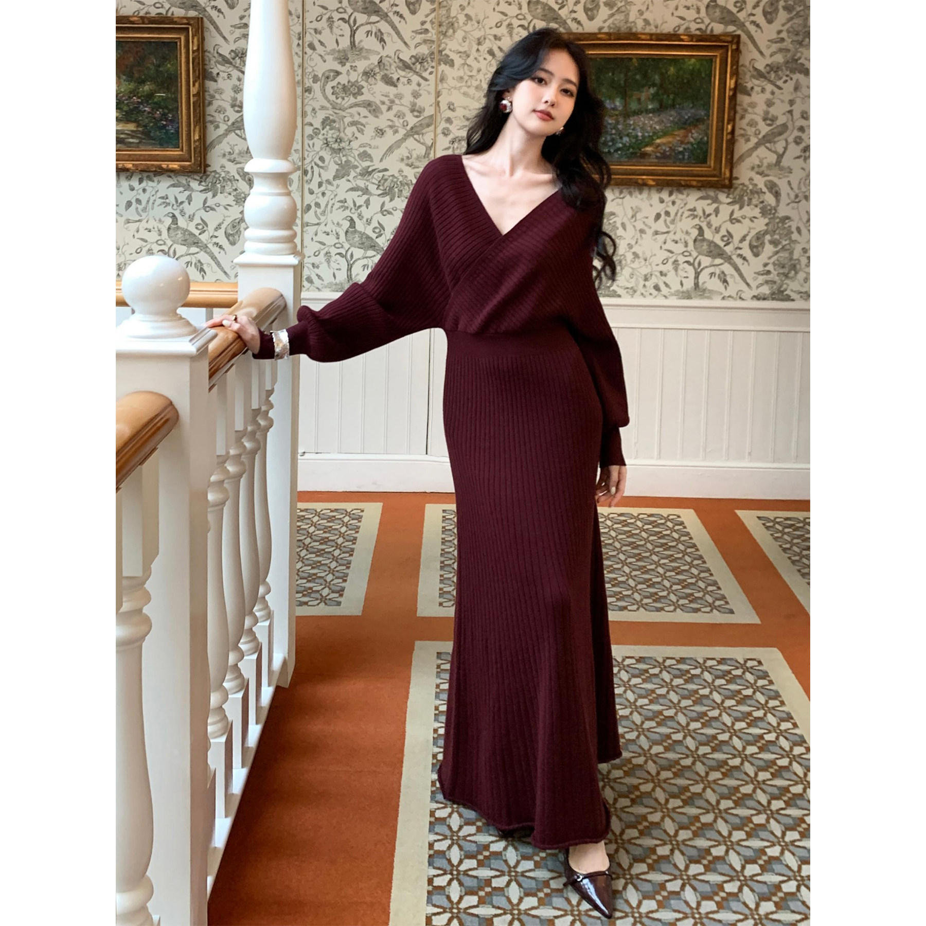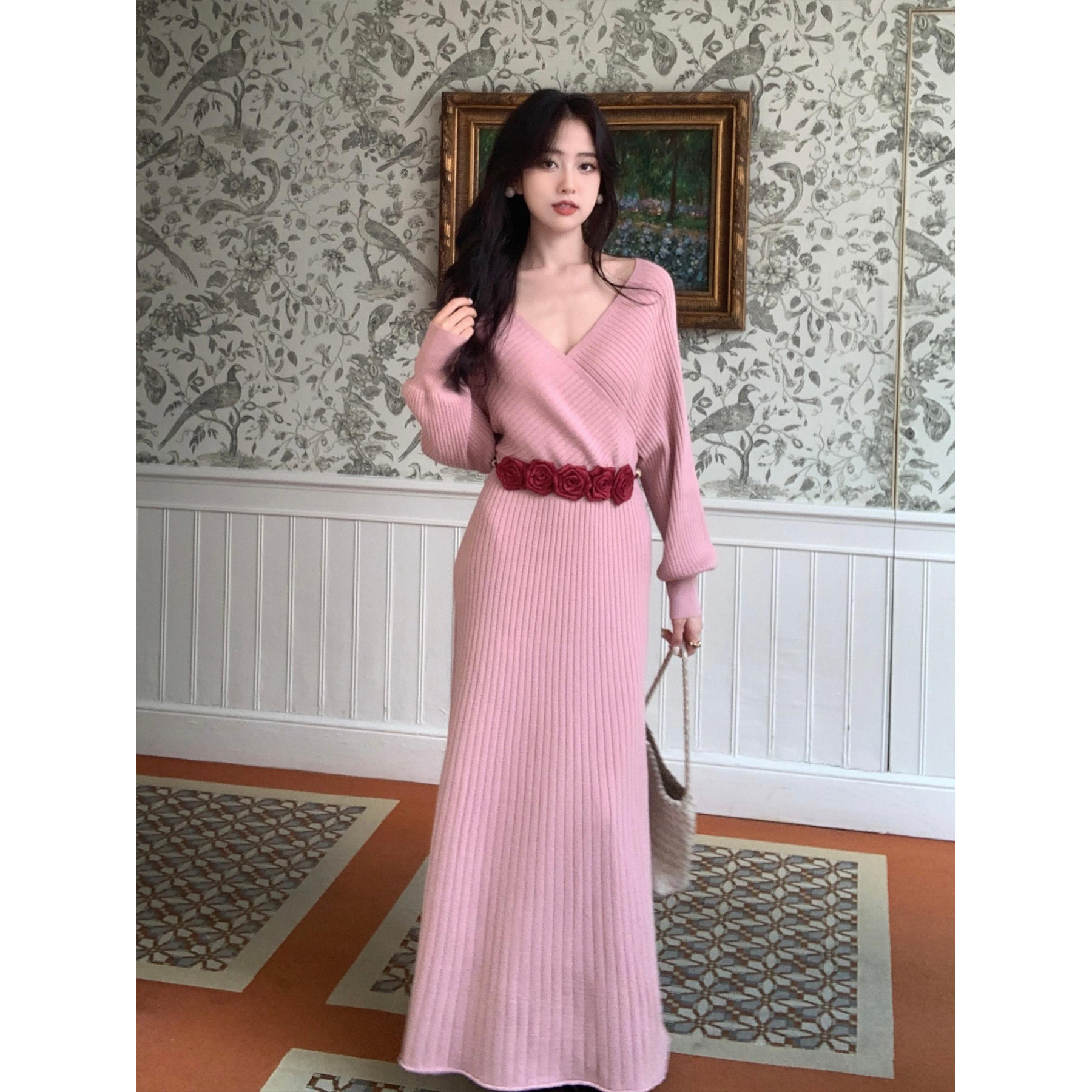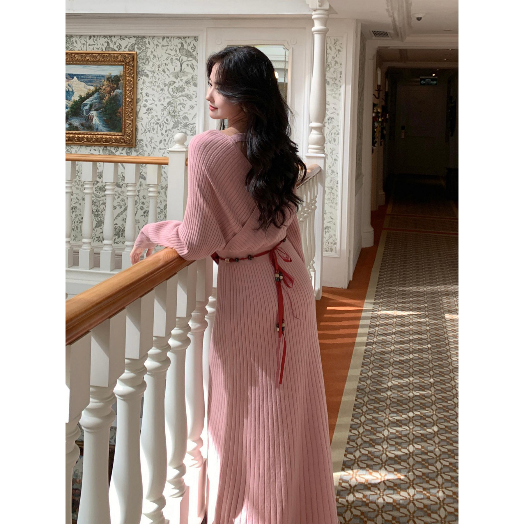 套头长袖 慵懒宽松感螺纹针织长款 SYT自制 A字型连衣裙女 听松