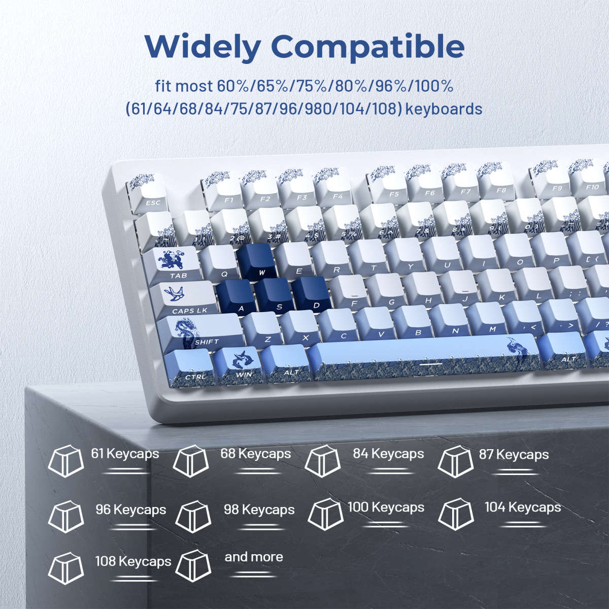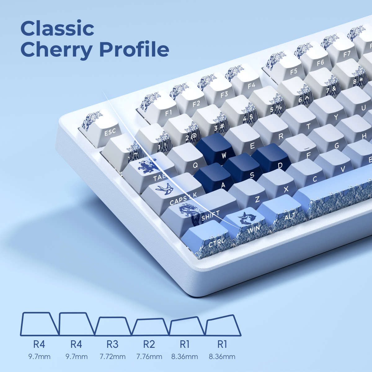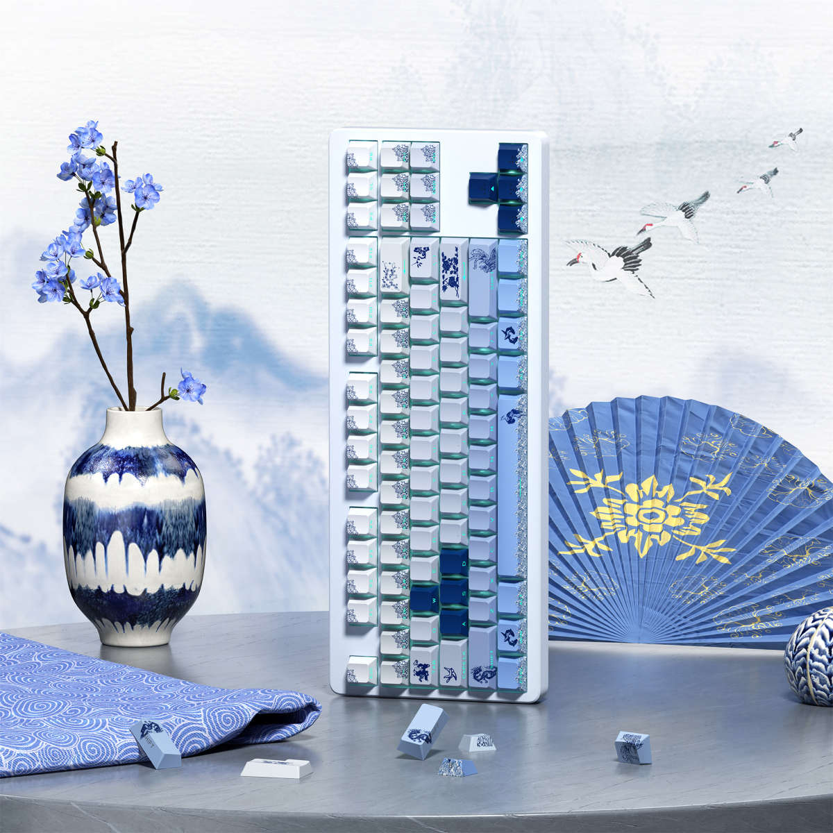 XVX 原厂侧刻透光PBT热升华键帽136键适配wooting 国风·青花瓷