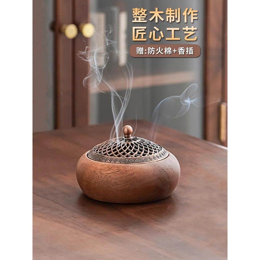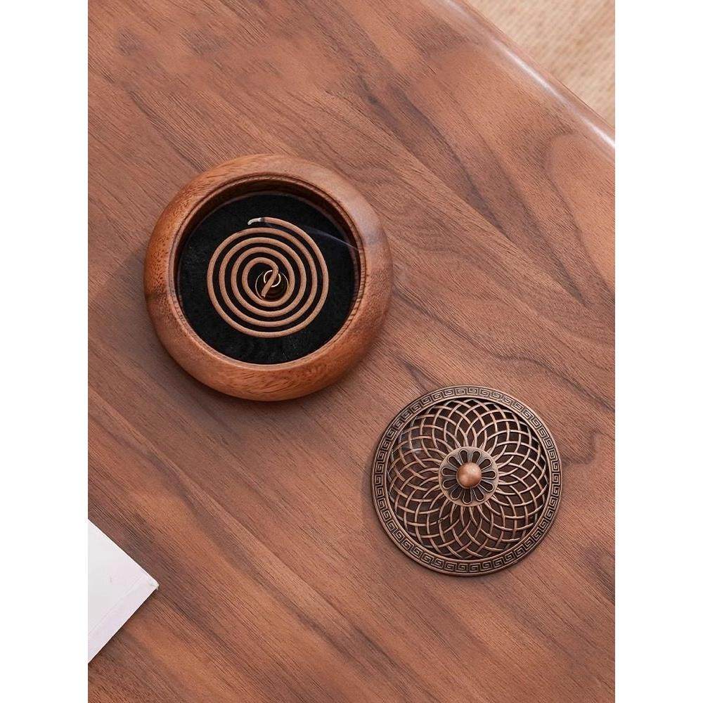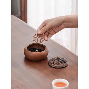 南美胡桃木实木线香家用熏香插手工茶道圆形香炉盘香底座沉香盘托