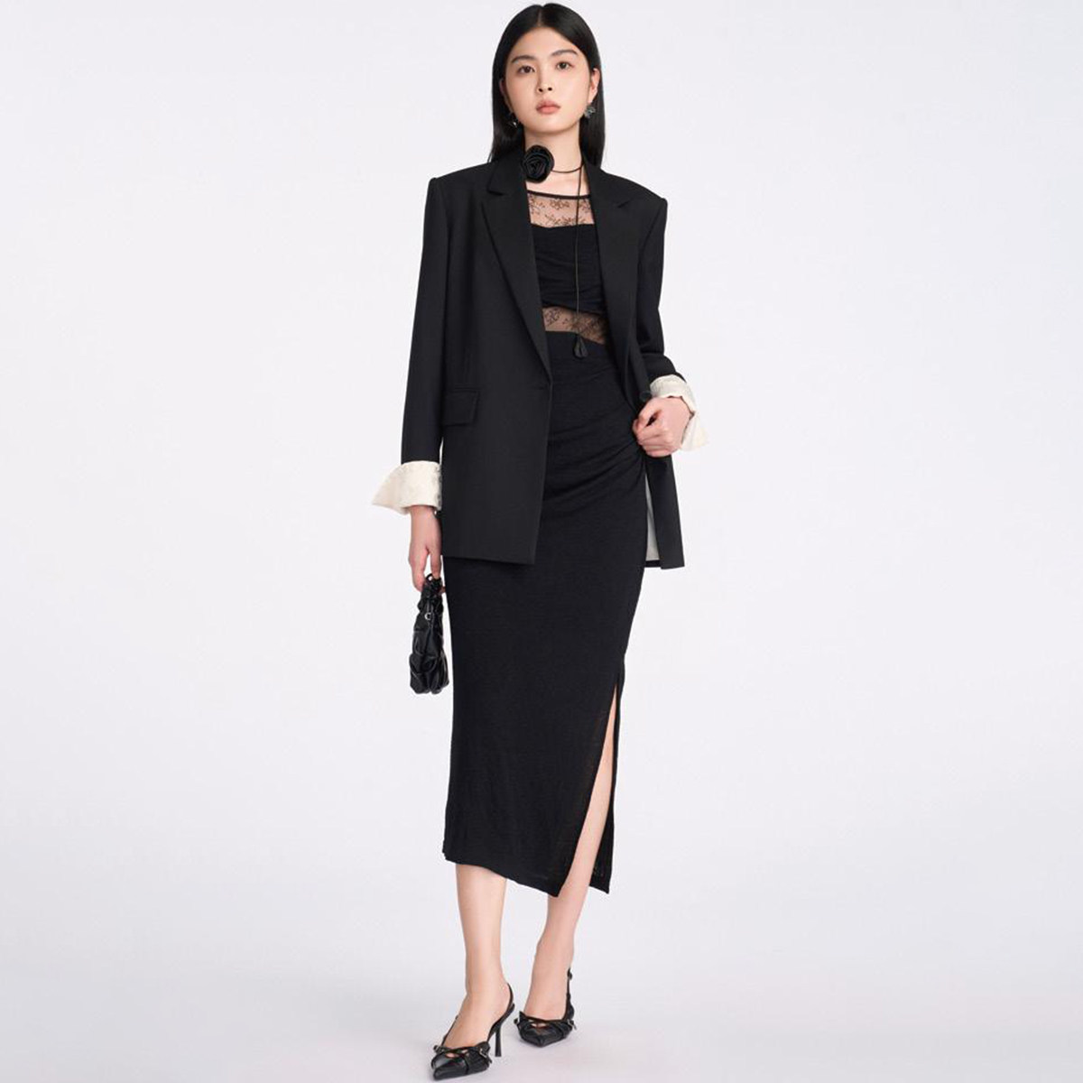圆领蕾丝拼接收腰无袖 1299 26春装 莫Y 连衣裙311 100绵羊毛