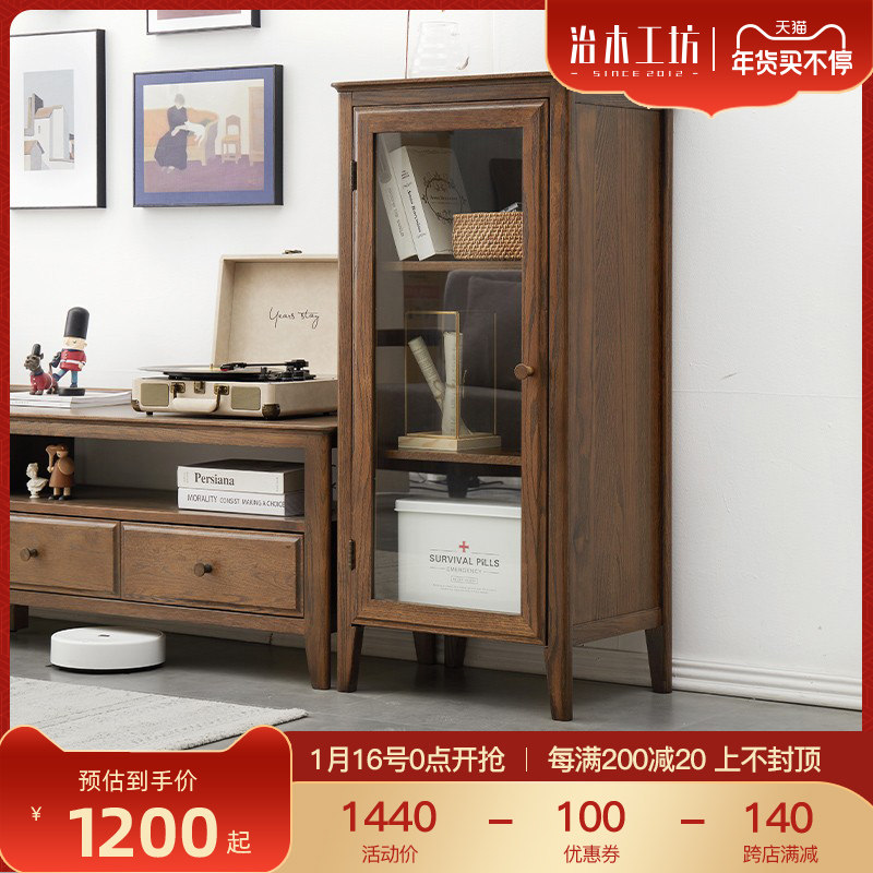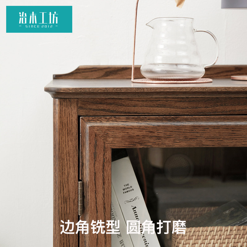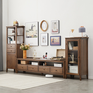 全实木厅柜小书柜胡桃色红橡木展示柜客厅边柜组合柜角柜美式 家具