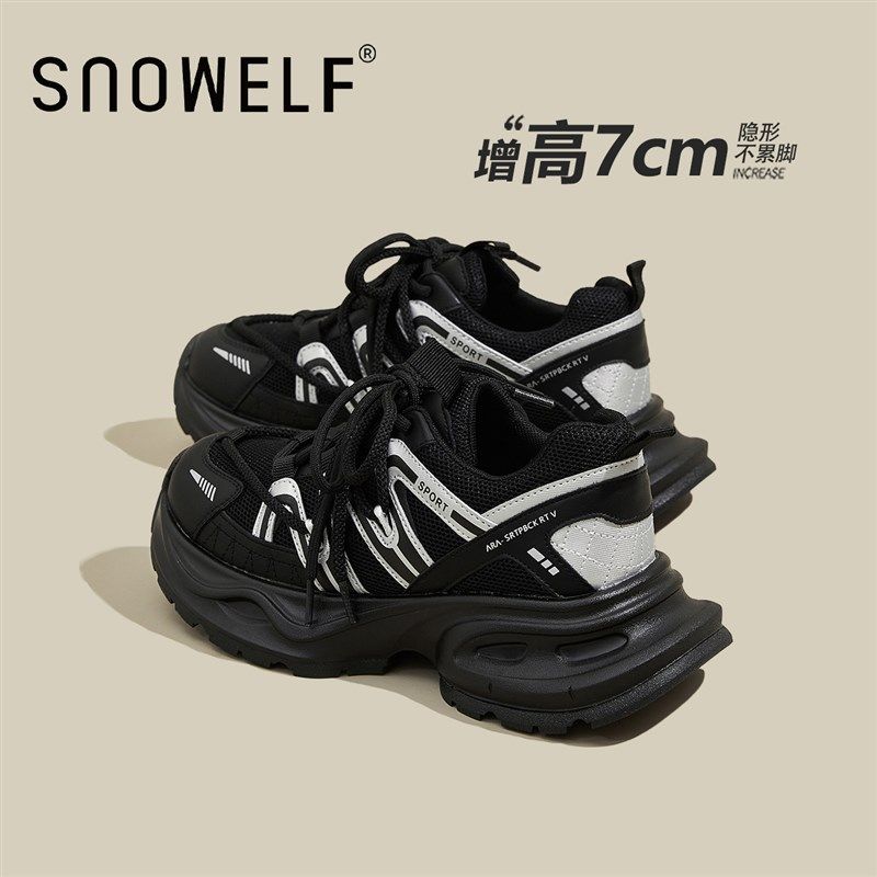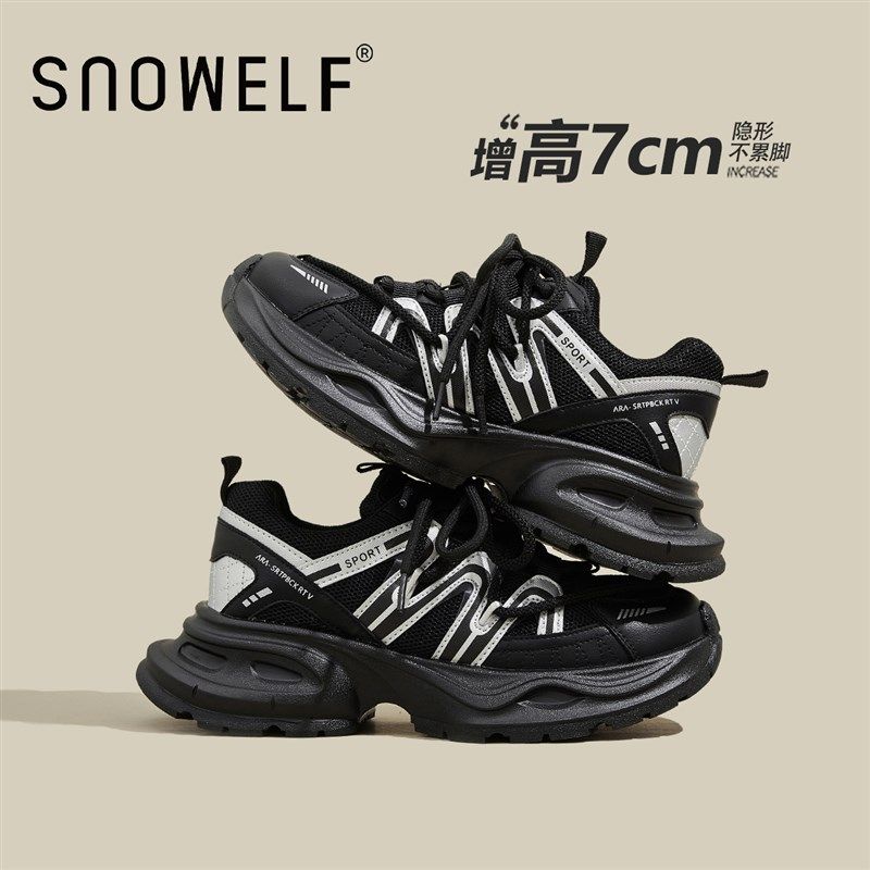 2025冬季 女款 厚底老爹鞋 百搭黑色运动鞋 女加绒增高休闲鞋 骆驼女鞋