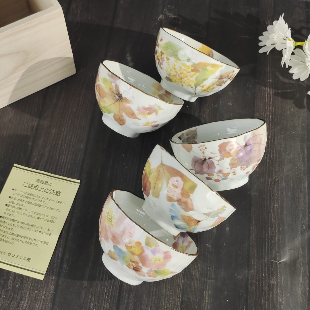 日式 锦荣春陶瓷碗繁花系列日本釉下彩饭碗霜天晓五碗餐具套组