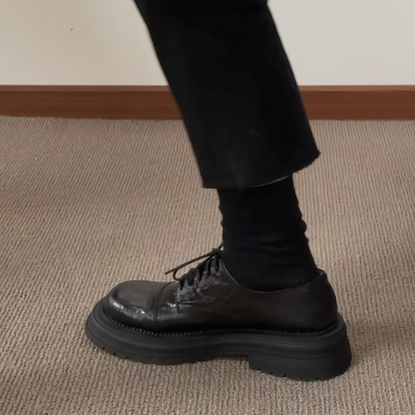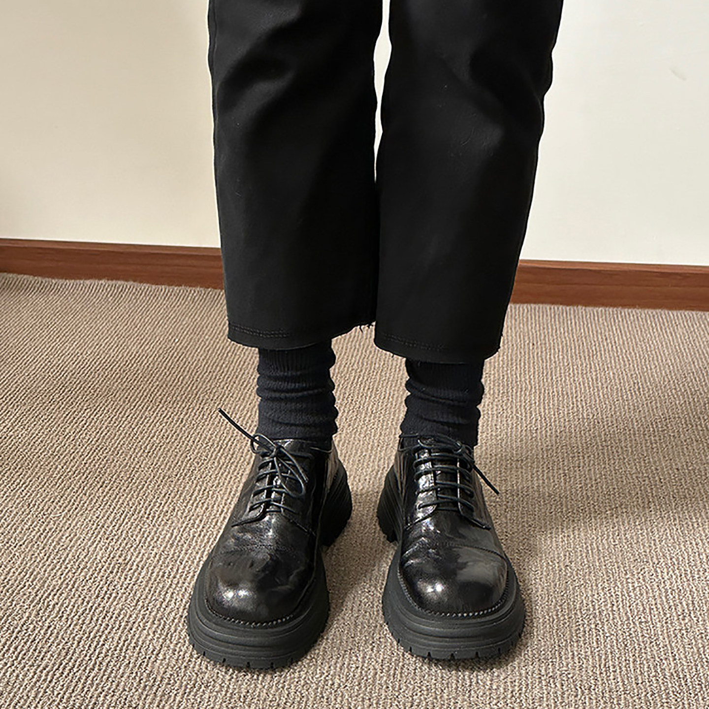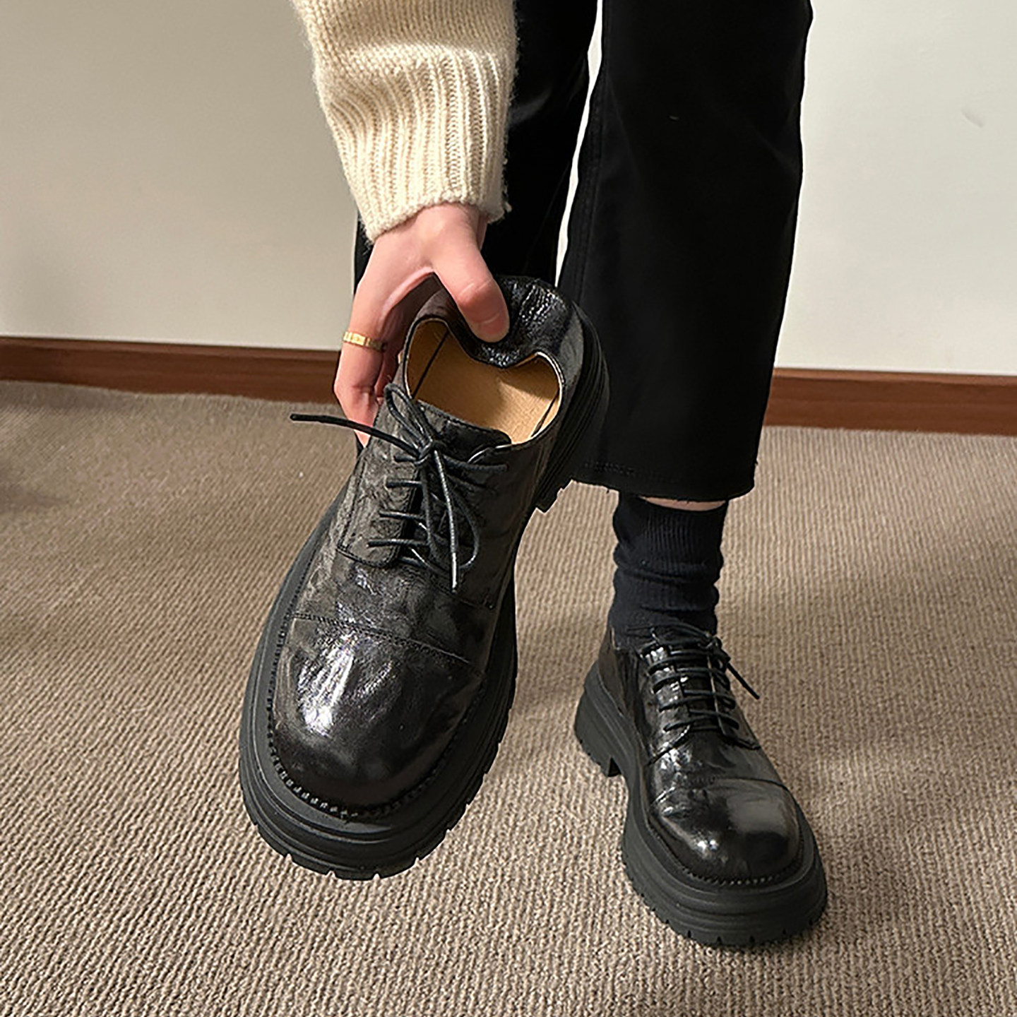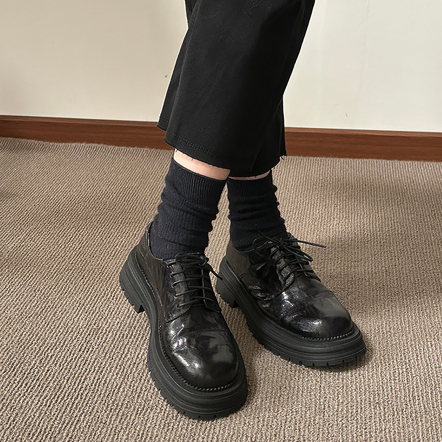 胡连馨同款 皮鞋 千百度厚底真皮乐福鞋 新款 深口单鞋 女2025秋季