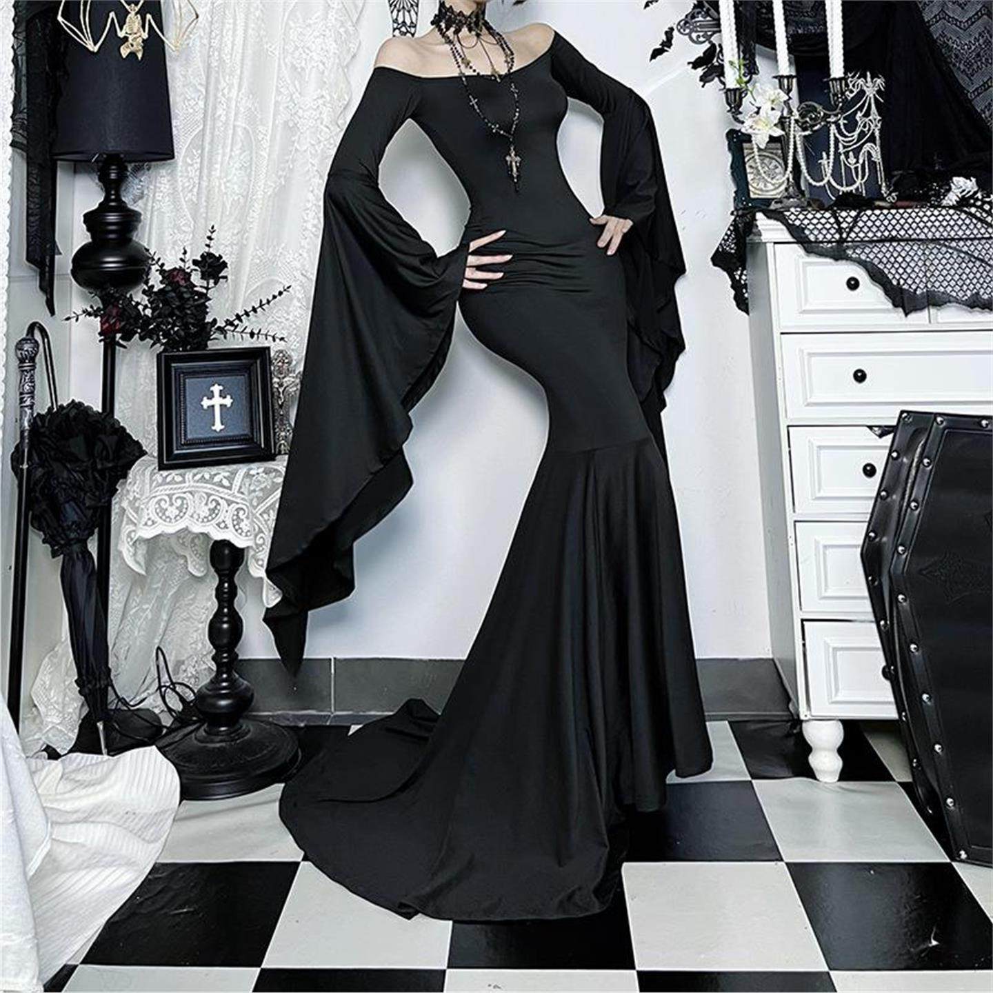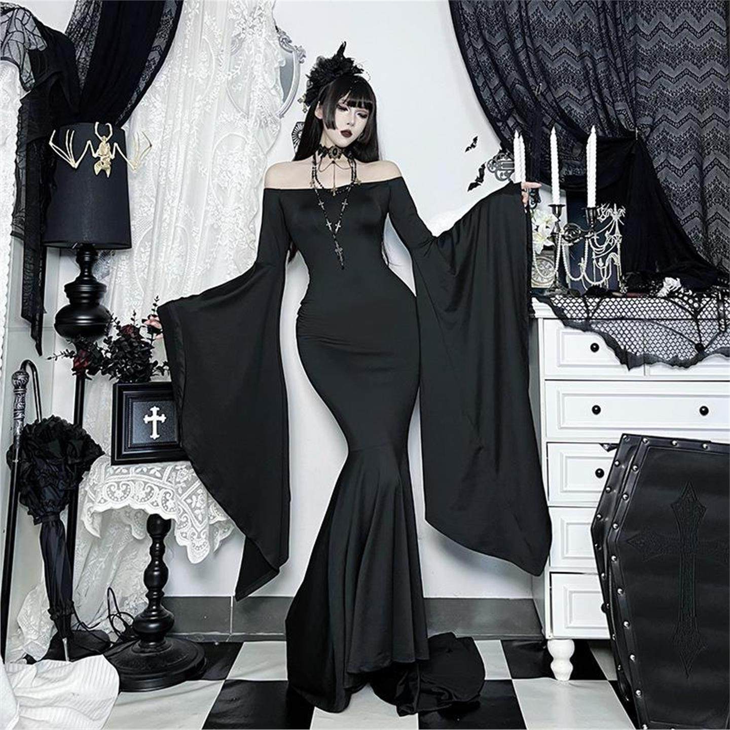 Dramatic Gothic一字肩连衣裙哥特宴会派对Formal礼服Gown Sleeve